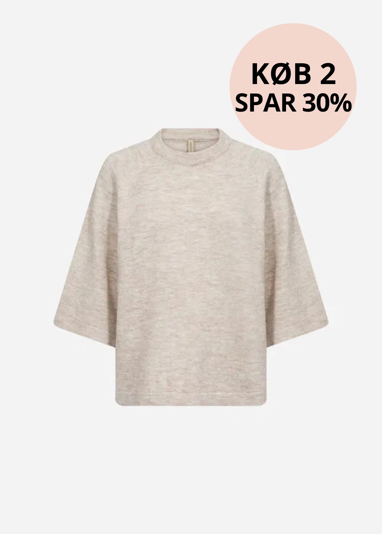 Sød lille strik med rund hals og 3/4-ærmer med vidde.