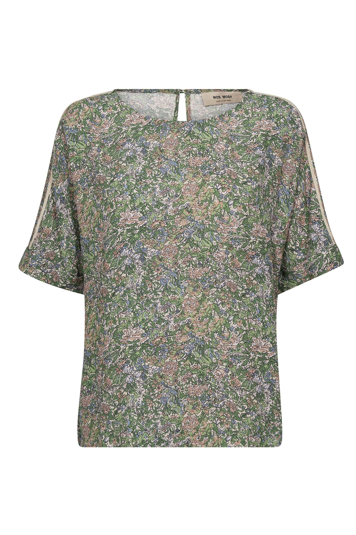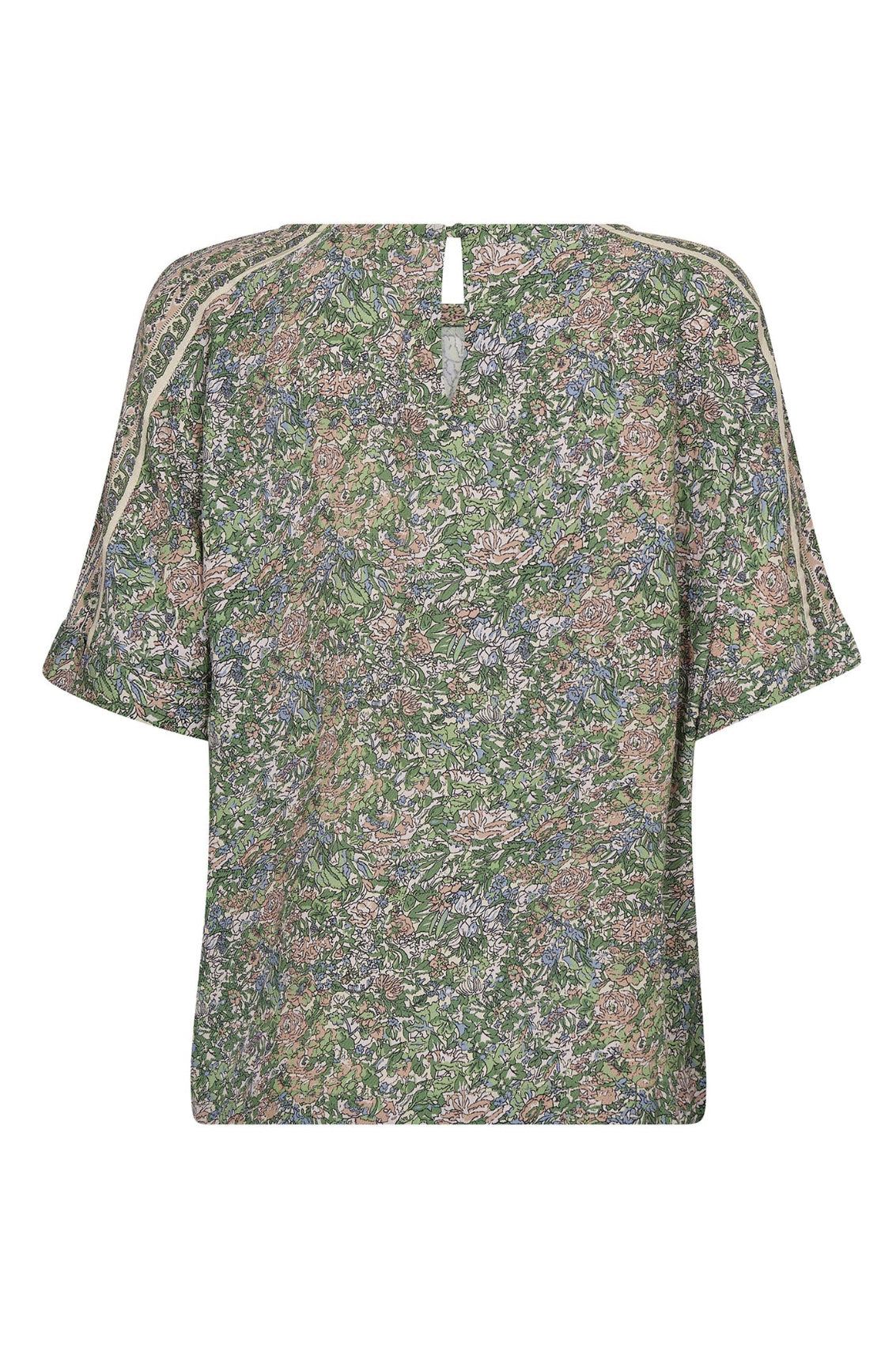 Fineste lille viscosebluse med rund hals og korte ærmer