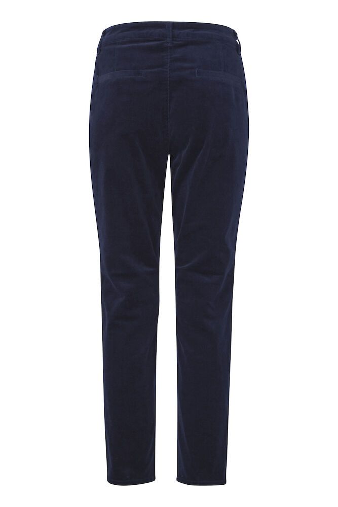 Høj-taljet buks med skrålommer, fast linning med bæltestropper samt smalle ben.