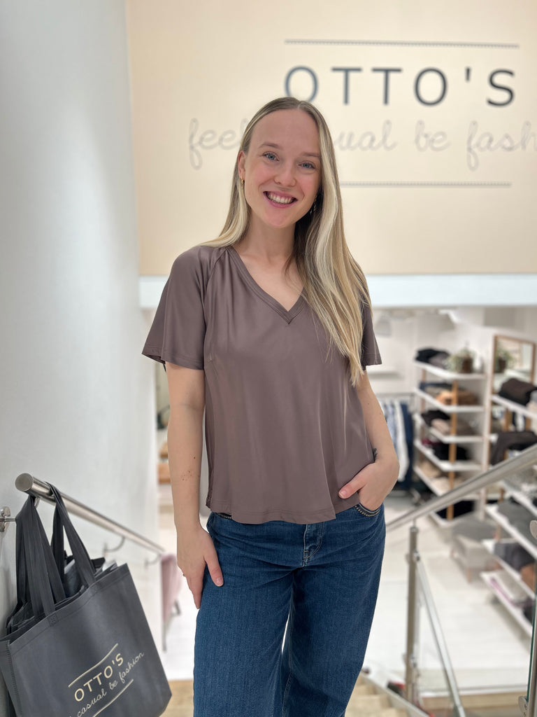 Materiale; 5% Elastan, 95% Viskose, Deko: 95% Viskose, Foer: 95% Viskose