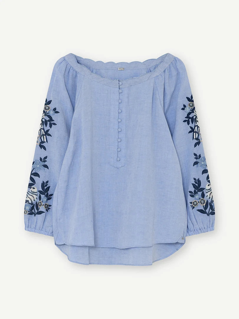 Den smukkeste bluse, med rund hals samt elastik ved manchetter.