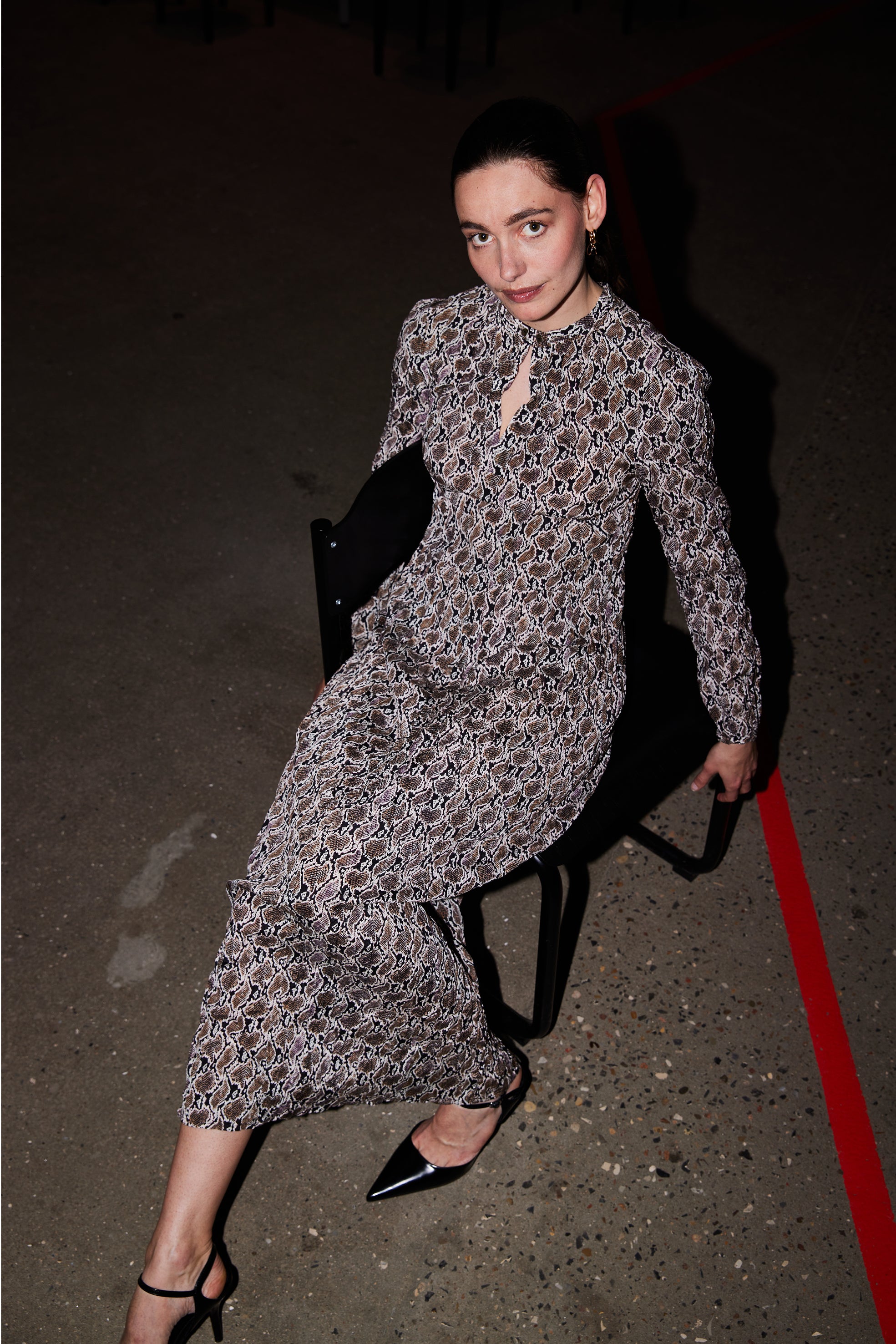 Ikonisk kjole med lange ærmer og særlig krøl-effekt