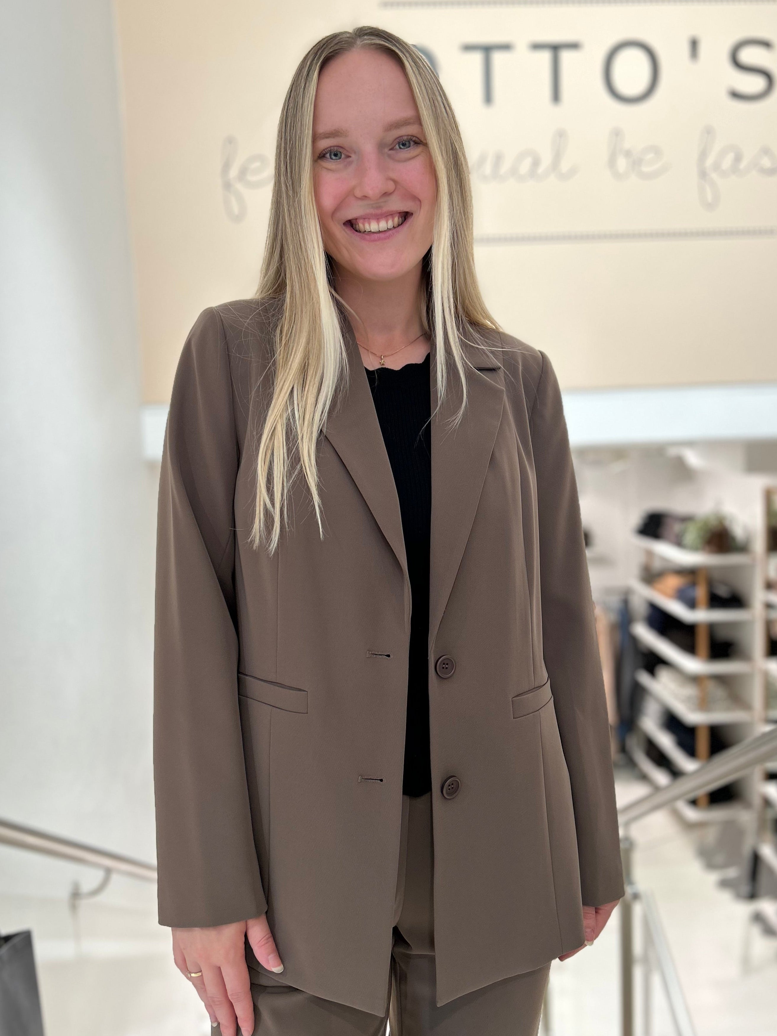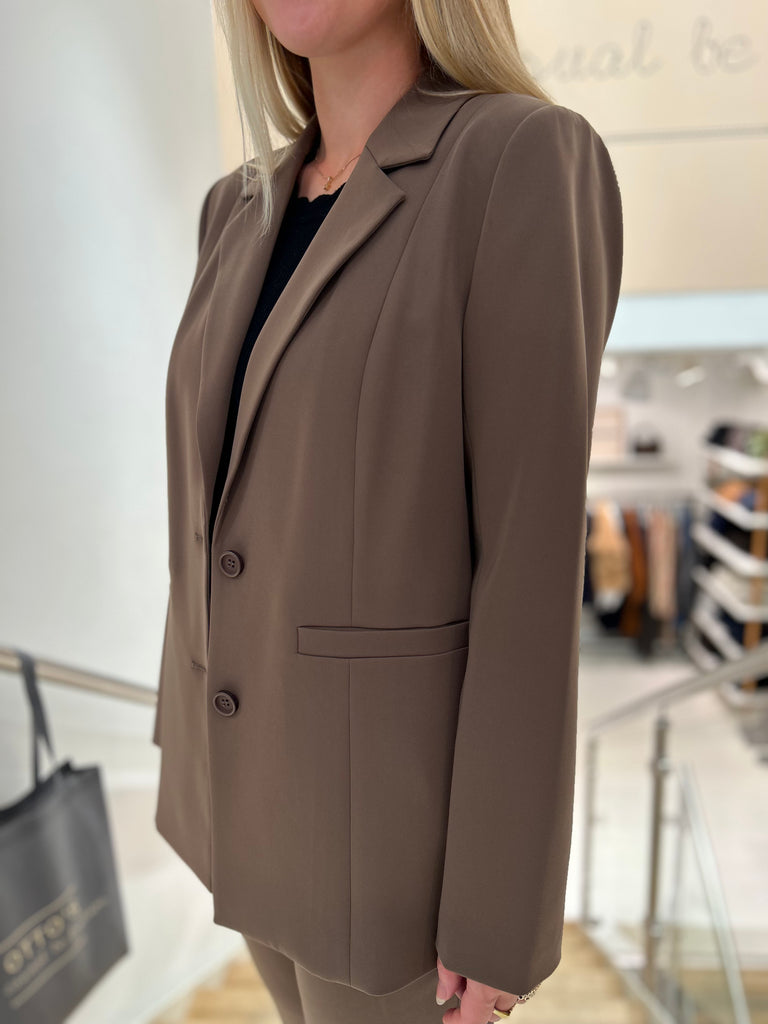 Loose fitted blazer med en masse stretch og to knapper fortil til lukning
