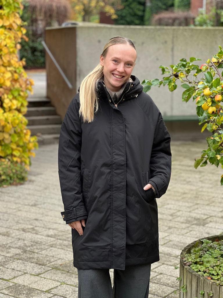 Denne oversize parkafrakke er perfekt til efterårets kølige vejr, hvor den quiltede foring holder dig godt varm. Designet med lynlåslukning, stor hætte og justerbare snører indvendig for en tilpasset pasform. Frakken er vandafvisende og er derfor perfekt til det lunefulde efterårsvejr.