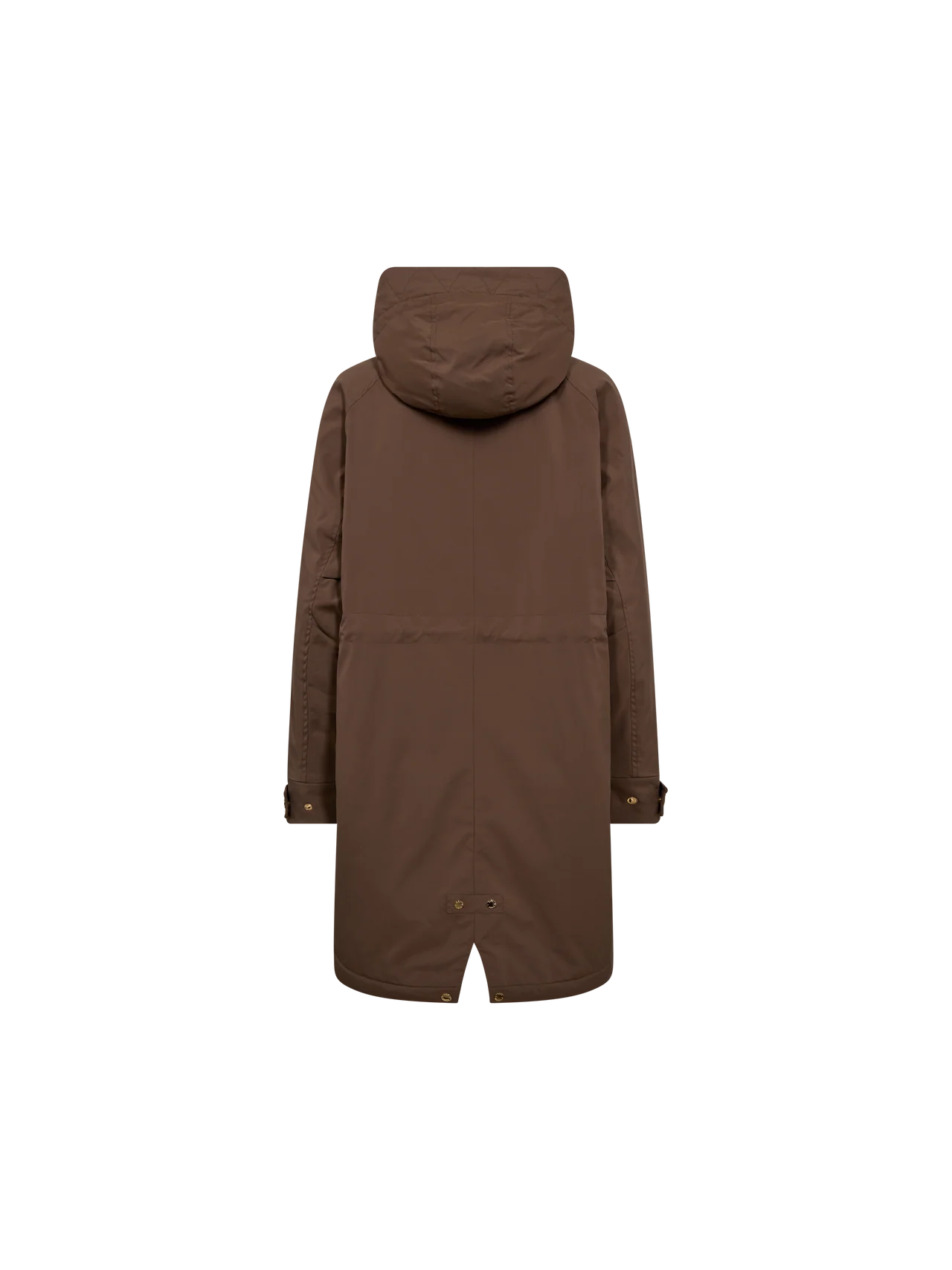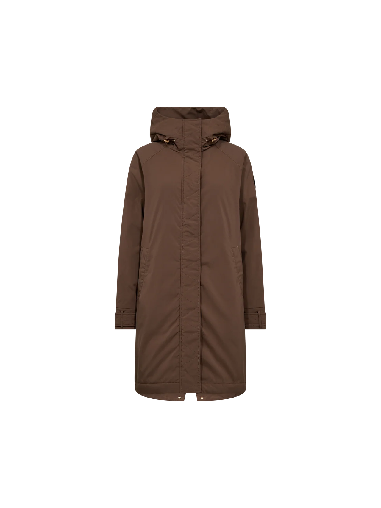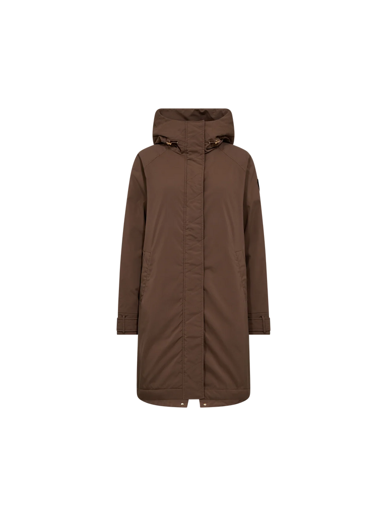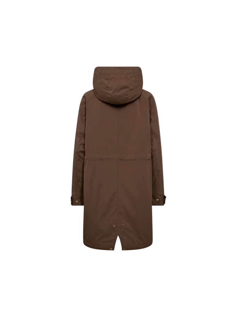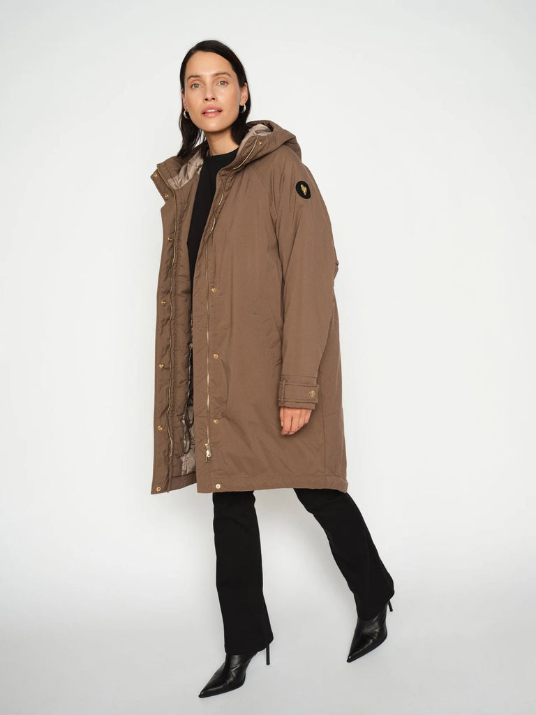 Denne oversize parkafrakke er perfekt til efterårets kølige vejr, hvor den quiltede foring holder dig godt varm. Designet med lynlåslukning, stor hætte og justerbare snører indvendig for en tilpasset pasform. Frakken er vandafvisende og er derfor perfekt til det lunefulde efterårsvejr.