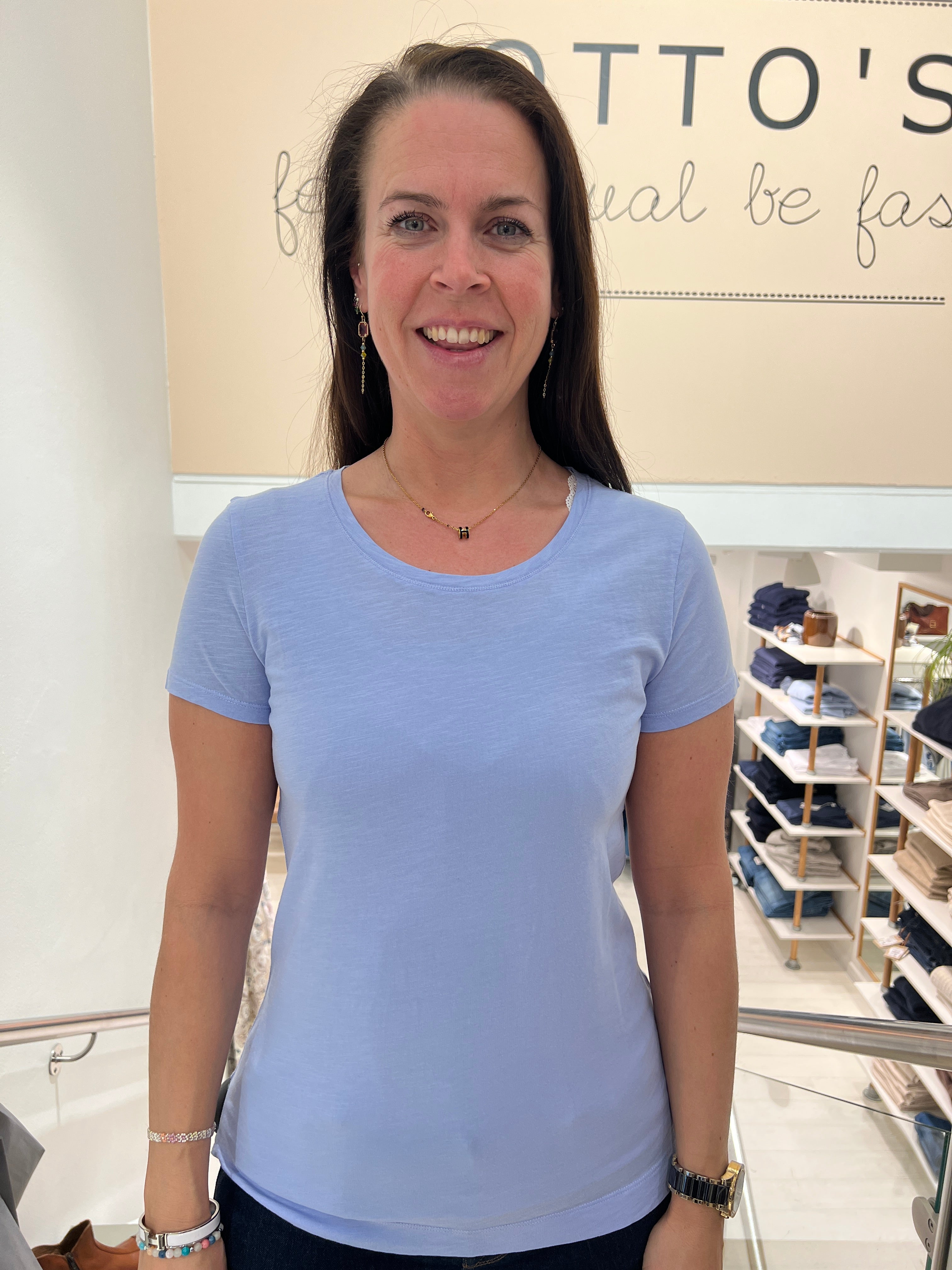 Gør din garderobe grønnere med denne klassiske T-shirt med O-hals, fremstillet i blød økologisk bomuld. Den har en flatterende tætsiddende pasform og passer perfekt til jeans, klassisk tailoring eller endda en denimnederdel. Her er en T-shirt, du altid kan regne med.