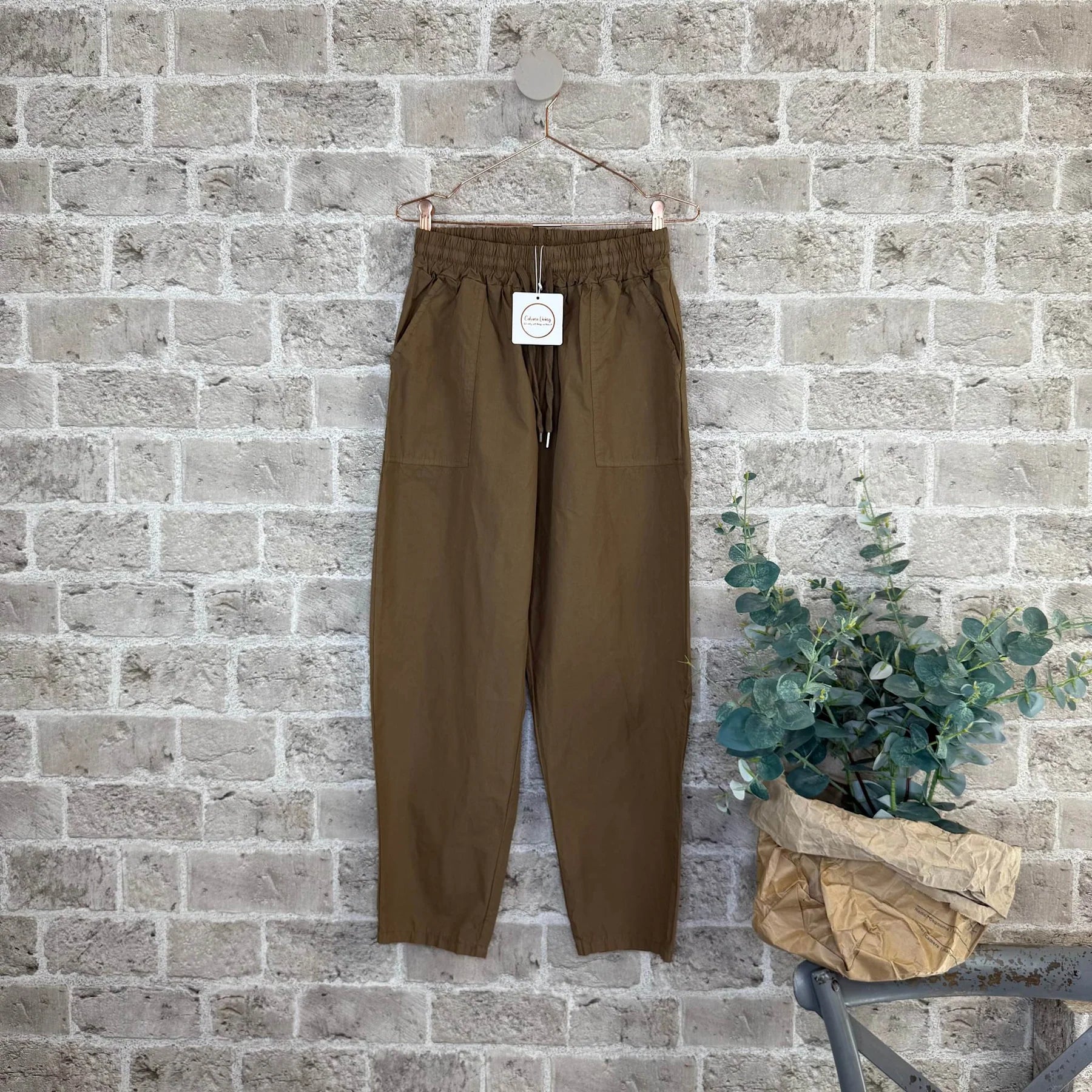 Lækre, casual bomulds-buks med elastik og bindebånd i taljen,