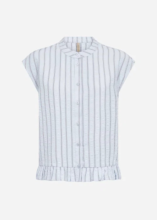 Fiene 1 er en sød skjorte uden ærmer med blå/hvide striber.