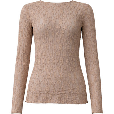 Elegant, tætsiddende bluse i transparent blonde med rund hals og lange ærmer. Den fine struktur giver et feminint og eksklusivt udtryk, perfekt både alene med en top under eller stylet under blazer og kjole.