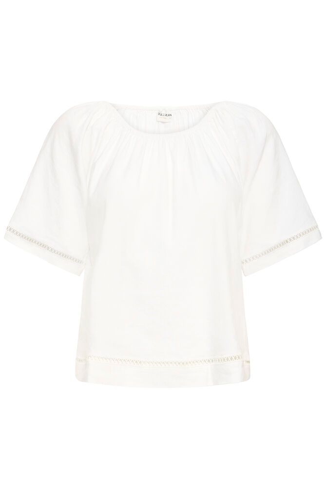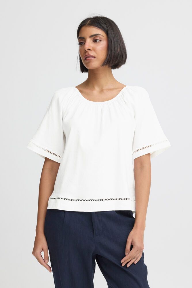 Kortærmet hør-bluse med fine detaljer
