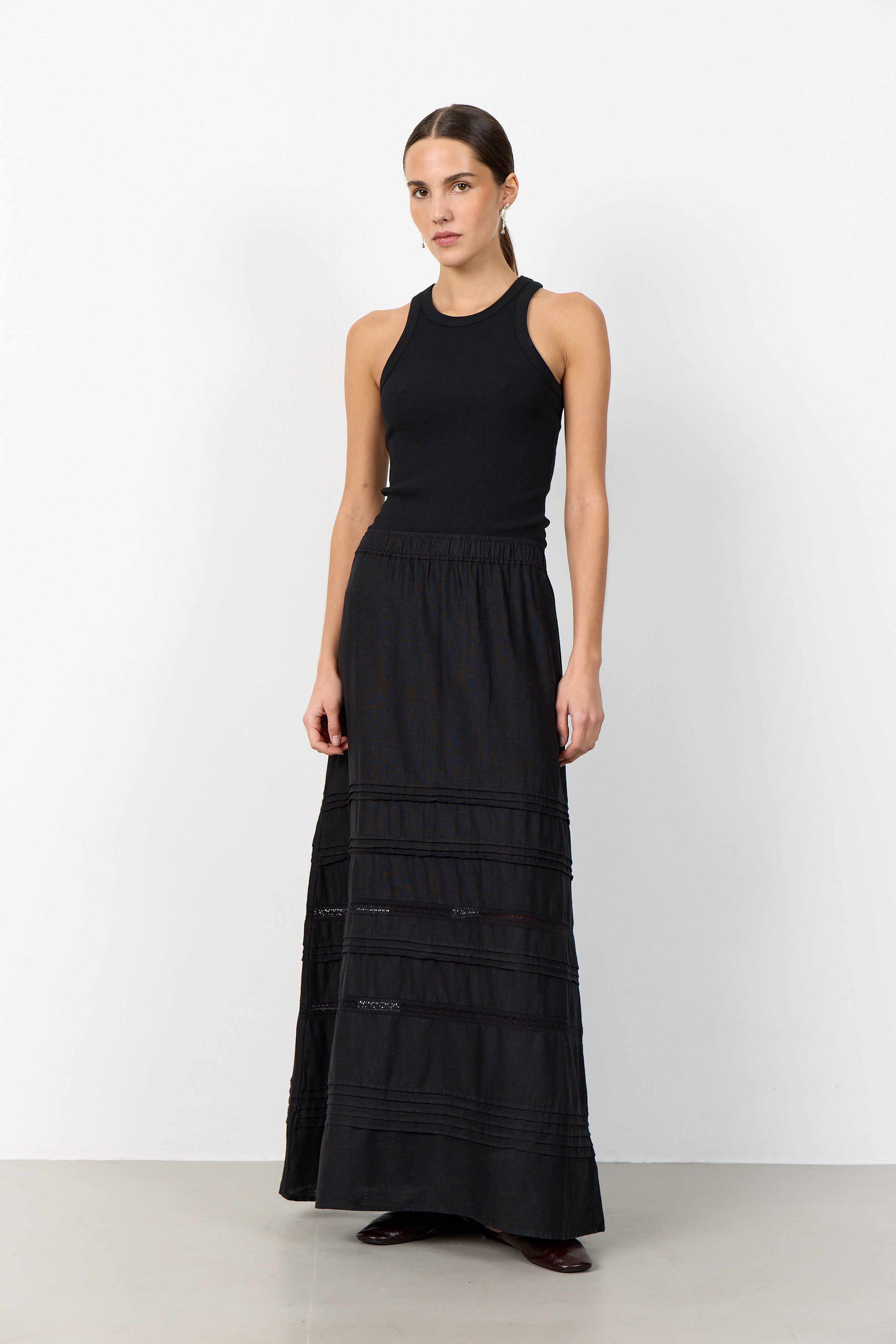 LR-NAJA 64 er en flot nederdel lavet af 55% hør, 45% viskose. Denne elegante nederdel har en lang længde og fine vandrette striber. Style den med en enkel bluse og sandaler for et raffineret look.
