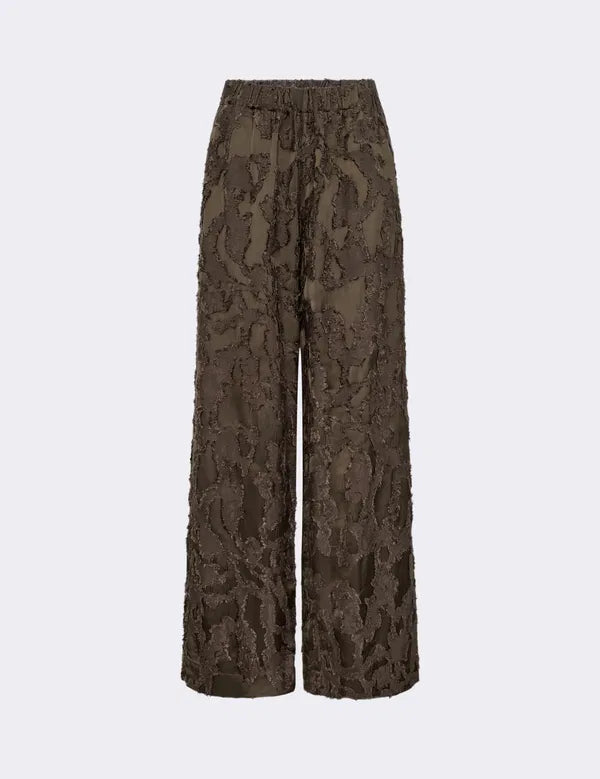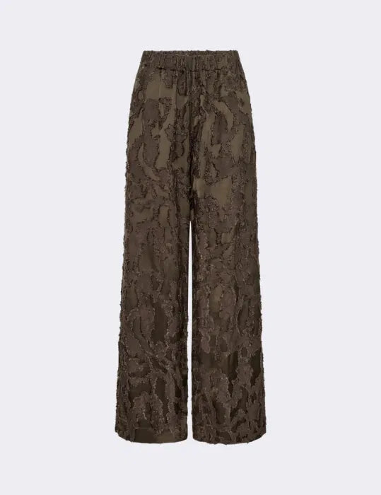 NIKO 1 er bukser fremstillet af 47% lyocell, 27% polyester og 26% viskose. Bukserne har en elastisk linning og et struktureret mønster i hele længden. Sæt dem sammen med en enkel top for et afbalanceret look eller en fed skjorte for en mere markant stil.
