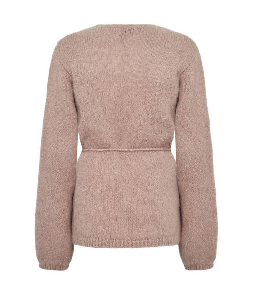 NOREEN 7 er en cardigan, der består af 53 % mohair, 45 % polyamid og 2 % elastan. Denne elegante cardigan har en klassisk V-hals, et bindebånd i taljen og lange ærmer med en blød tekstur. Sæt den sammen med skræddersyede bukser for et cool, sofistikeret look.