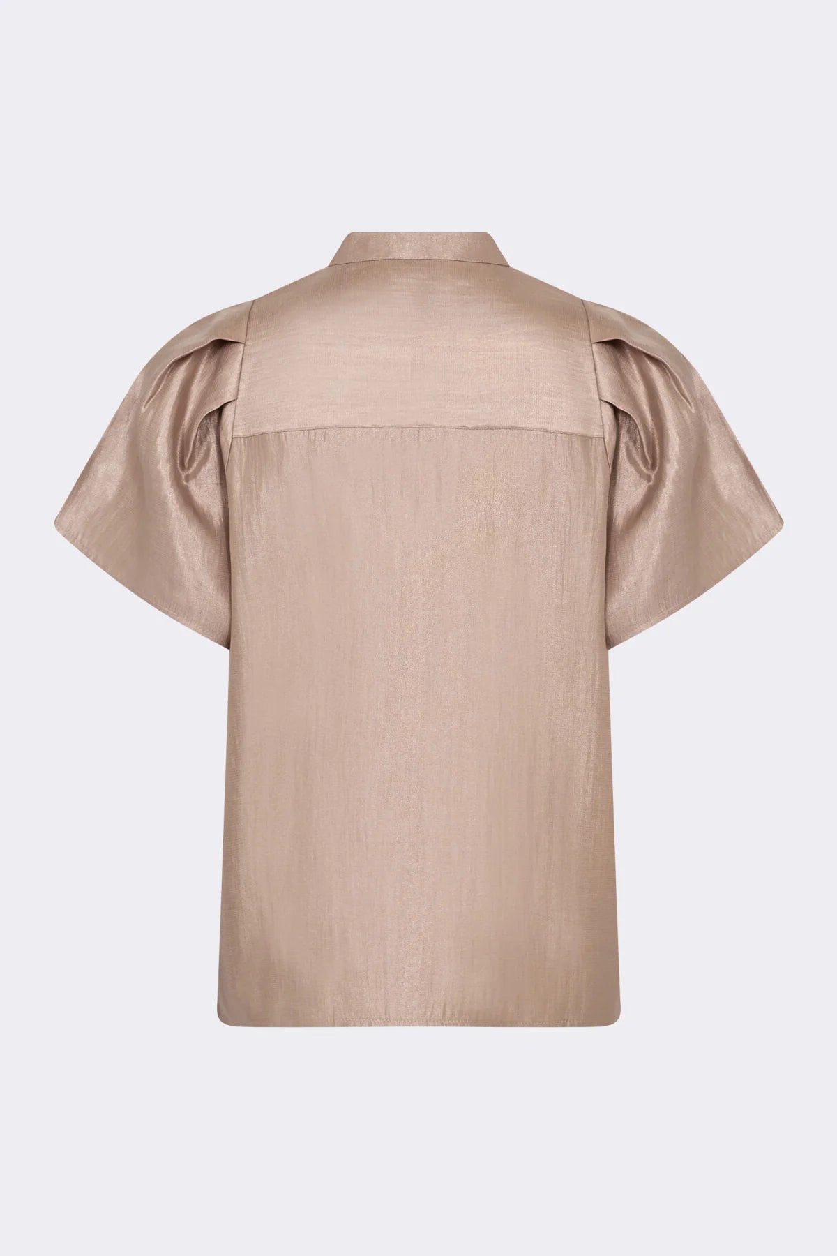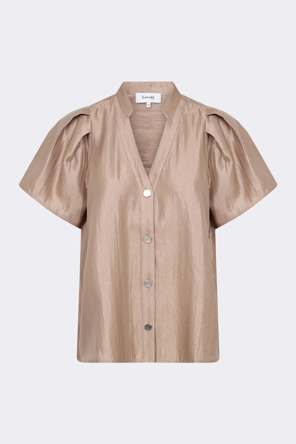 OLGINE 1 Bluse er fremstillet af 70% viskose, 20% polyester og 10% nylon. Den har V-udskæring, korte pufærmer og knaplukning foran med en let struktureret overflade. Denne elegante bluse passer smukt sammen med skræddersyede bukser eller en elegant nederdel for et sofistikeret look.