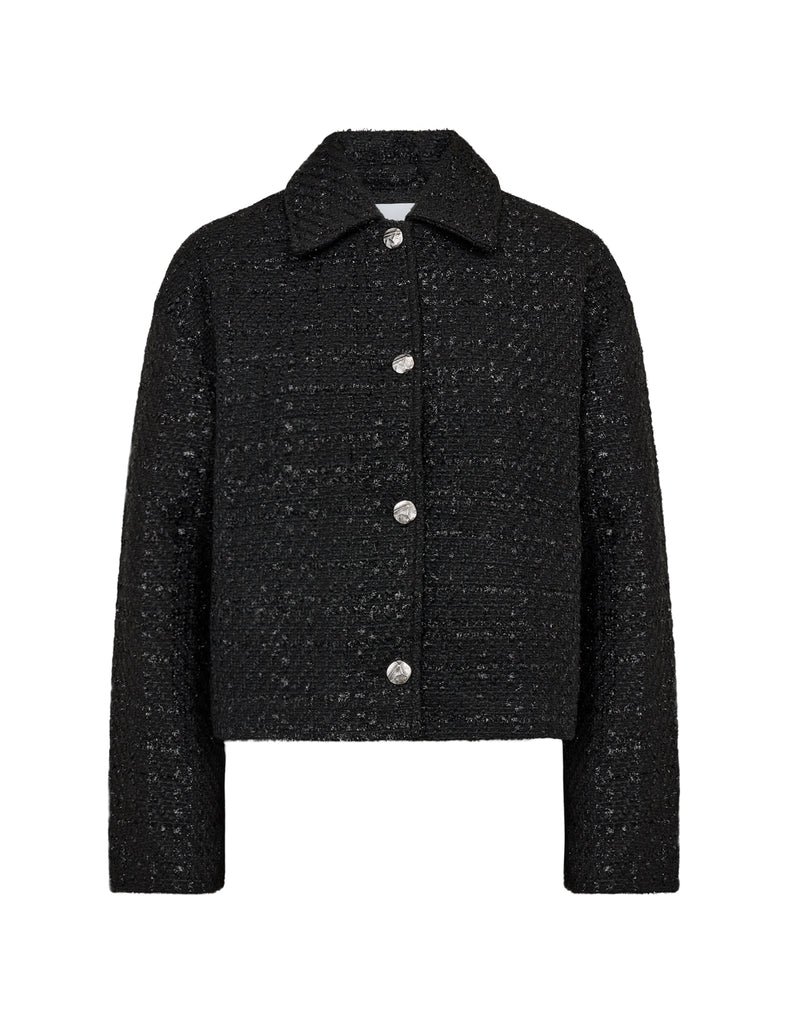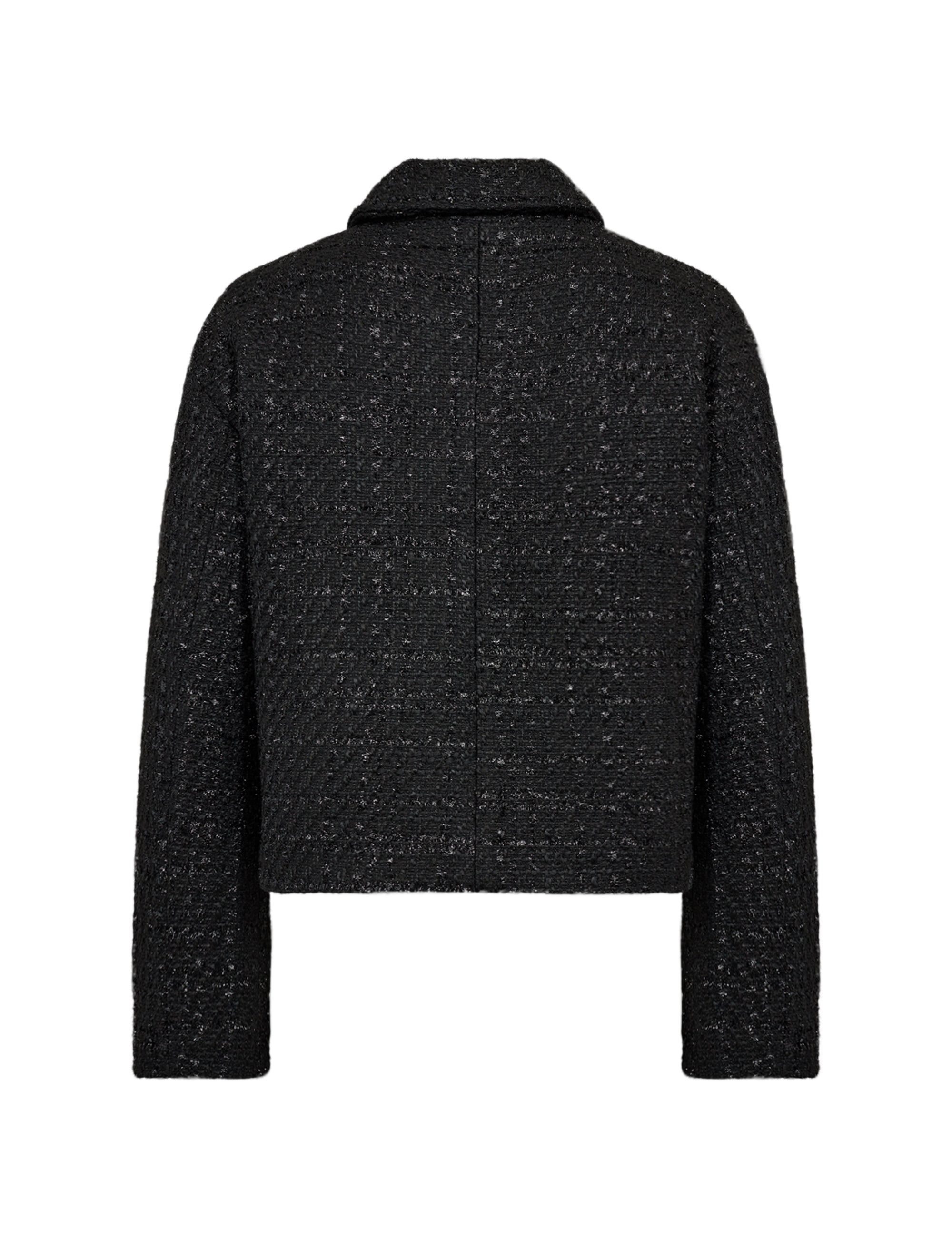 Denne elegante jakke har en klassisk krave, knaplukning foran og en struktureret finish, der tilføjer et unikt element til designet. Sæt den sammen med skræddersyede bukser eller jeans for et cool og poleret look.