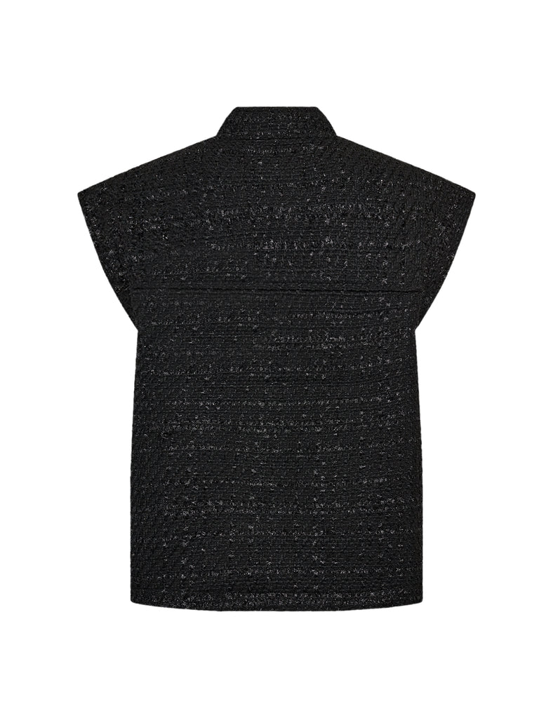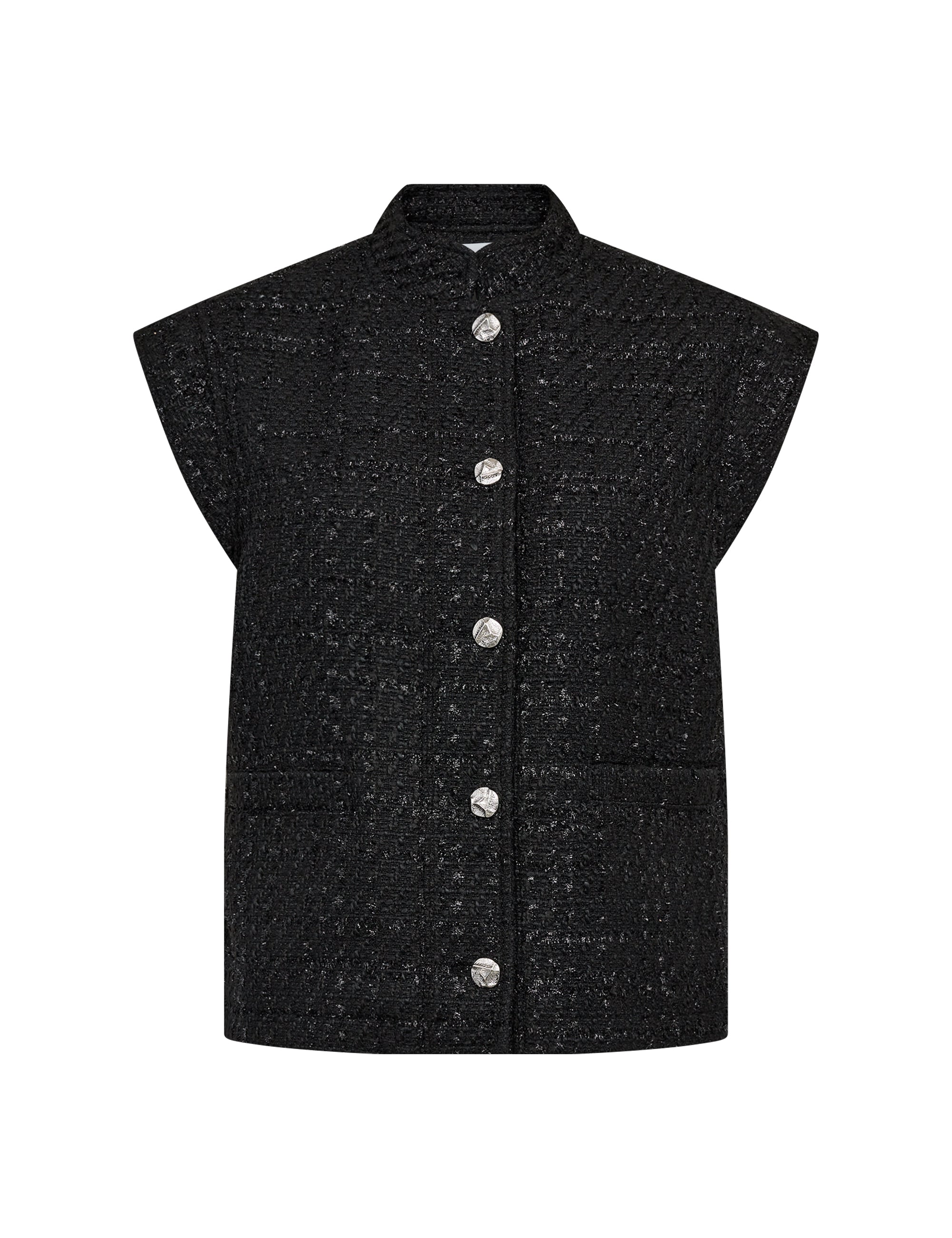 OSINA 2 er en vest fremstillet af 100 % genbrugspolyester. Dette elegante design har en høj krave, metalliske knapper, lommer foran og en struktureret finish. Sæt den sammen med skræddersyede bukser eller en elegant nederdel for et stilfuldt look.Farve: Black