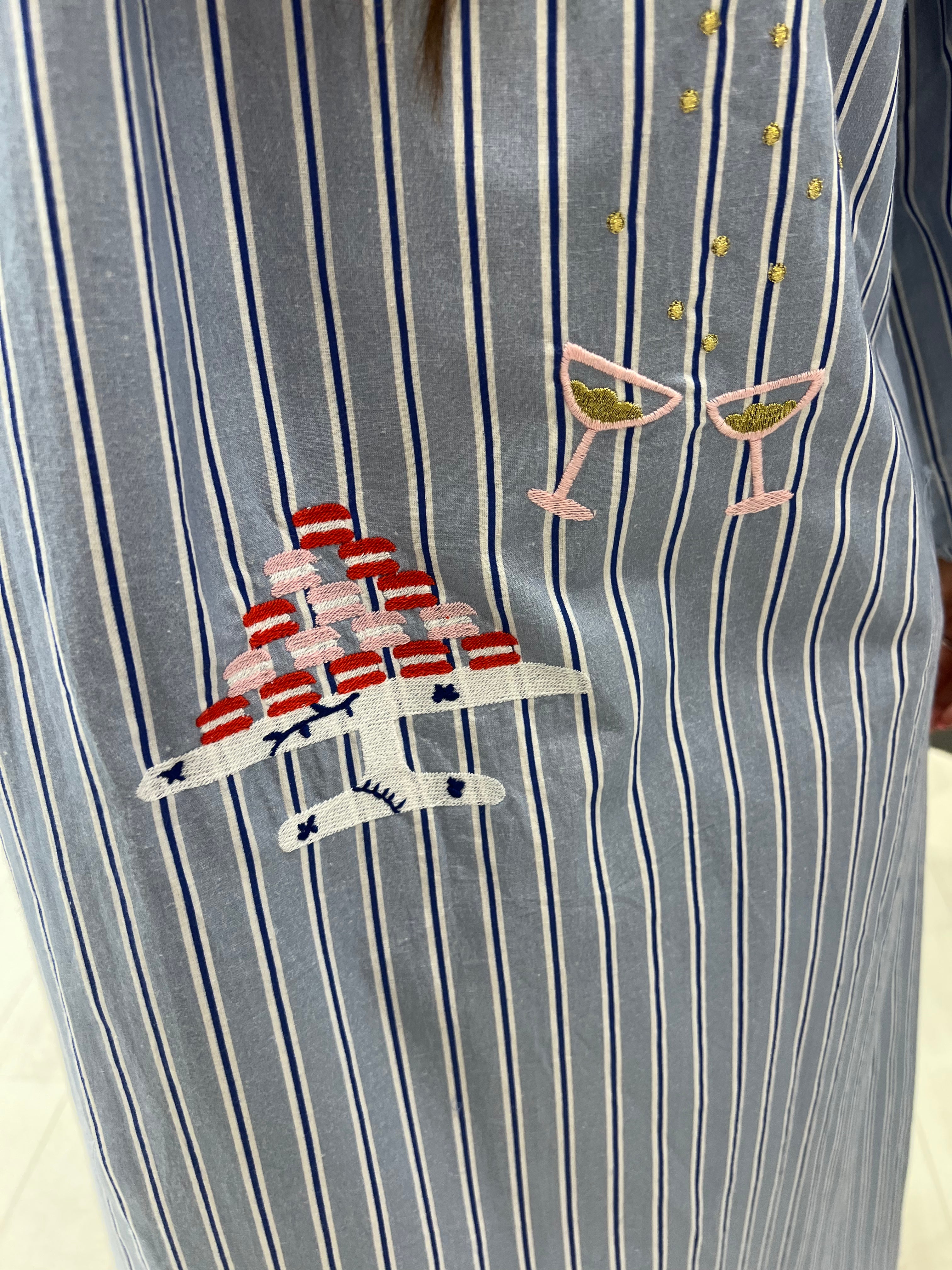 The Champagne Long Dress, Blue Stripe