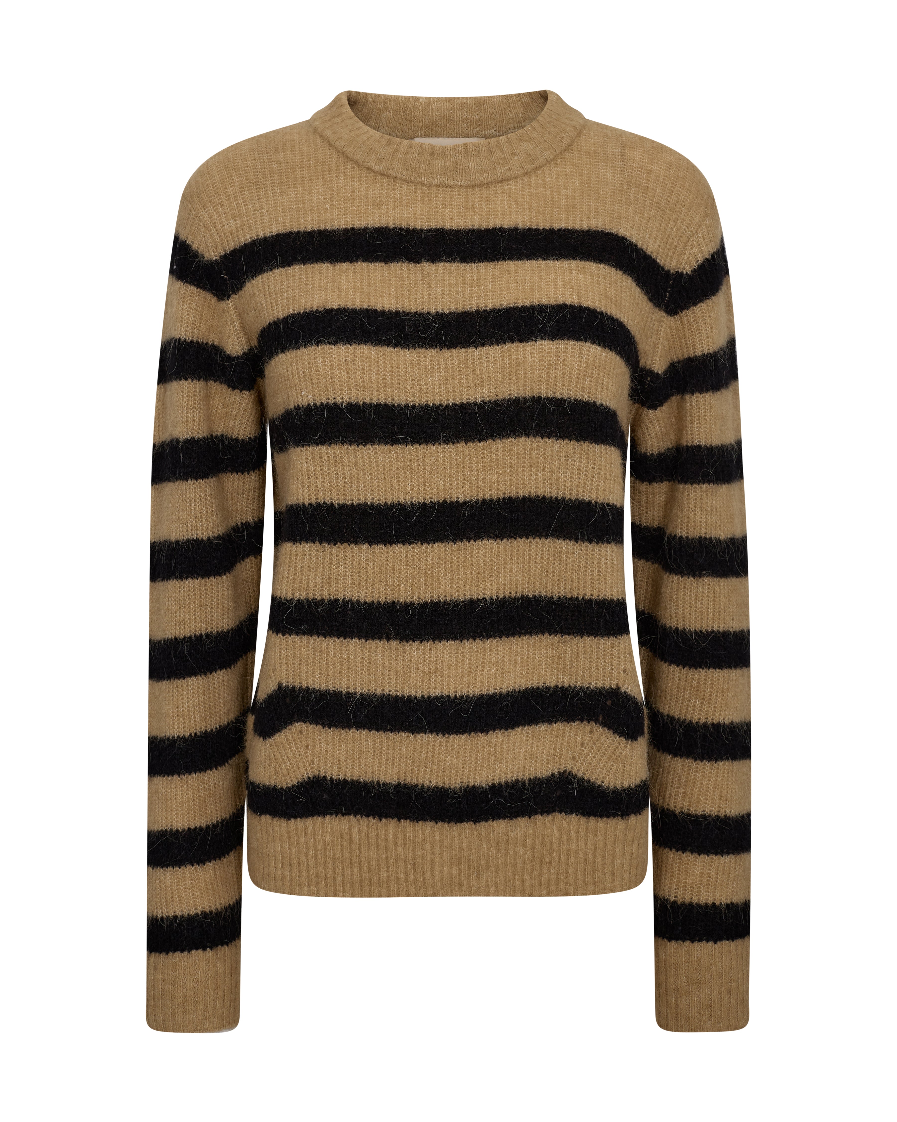 Med denne stilfulde stribede crewneck-strik kan du altid holde varmen. Den er fremstillet i en luksuriøs blanding af alpaka og genanvendt uld og designet i en regulær pasform for max. komfort. Med ribbede manchetter, kant og halsudskæring, som giver en flot tekstur. Brug denne alsidige strik til en afslappet hyggedag, hvor du bare gerne vil føle dig varm og godt tilpas. Den perfekte go-to style til de kolde dage.