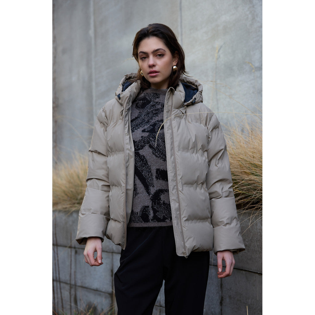 Wear it over a knit and jeans on cold weekdays, or as a practical outer layer when traveling. The neutral color makes it easy to combine with the rest of the wardrobe's favorites.
