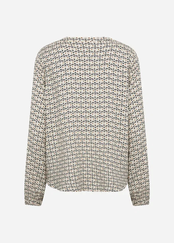 Fin lille viscosebluse med v-udskæring og elastik ved ærmer