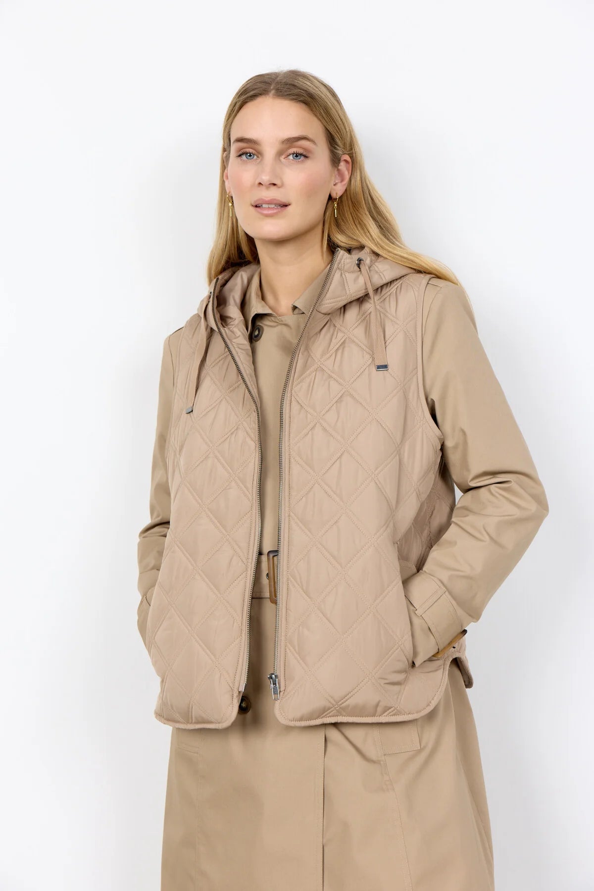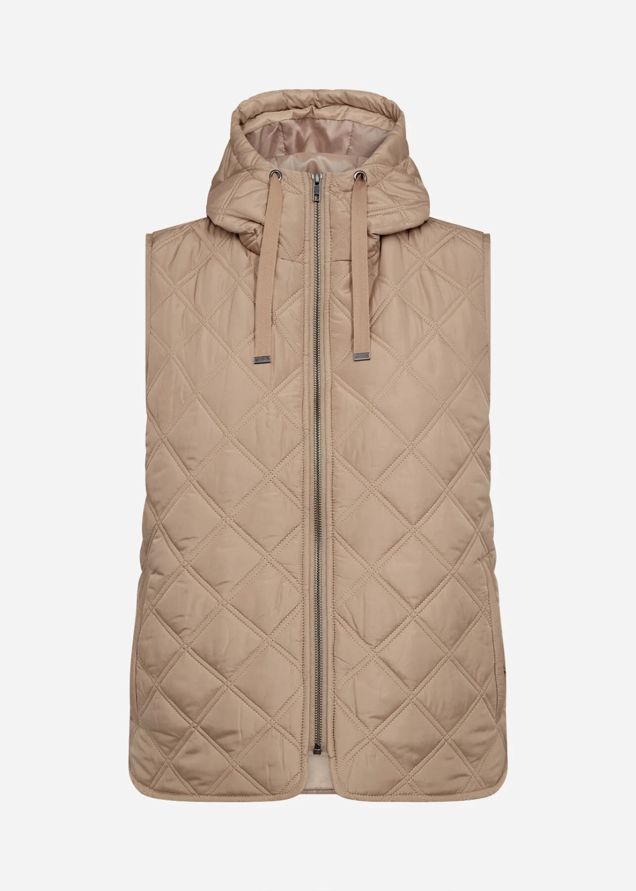 FENYA 77 er en stilfuld vest fremstillet af 100 % polyester. Den har en quiltet struktur, høj krave med snore og en gennemgående lynlås foran. Sæt den sammen med jeans og en sweater for et elegant og cool outfit.