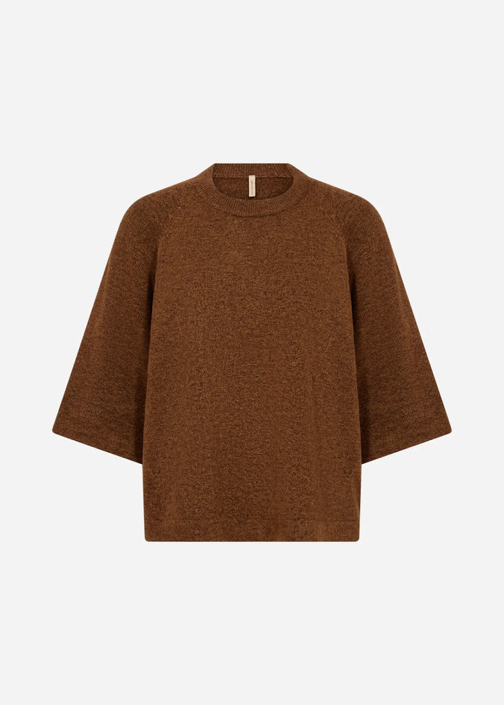 Sød lille strik med rund hals og 3/4-ærmer med vidde.