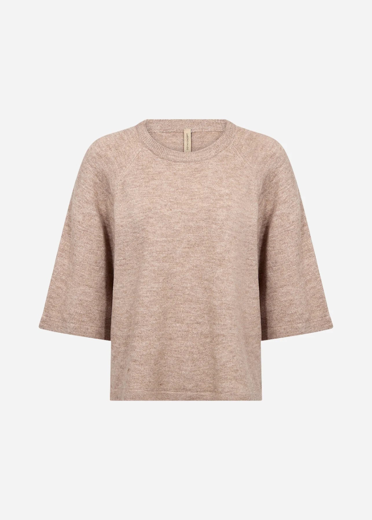 Sød lille strik med rund hals og 3/4-ærmer med vidde.