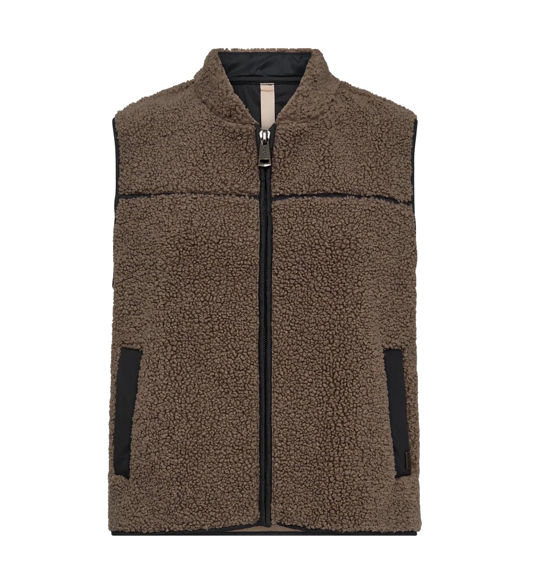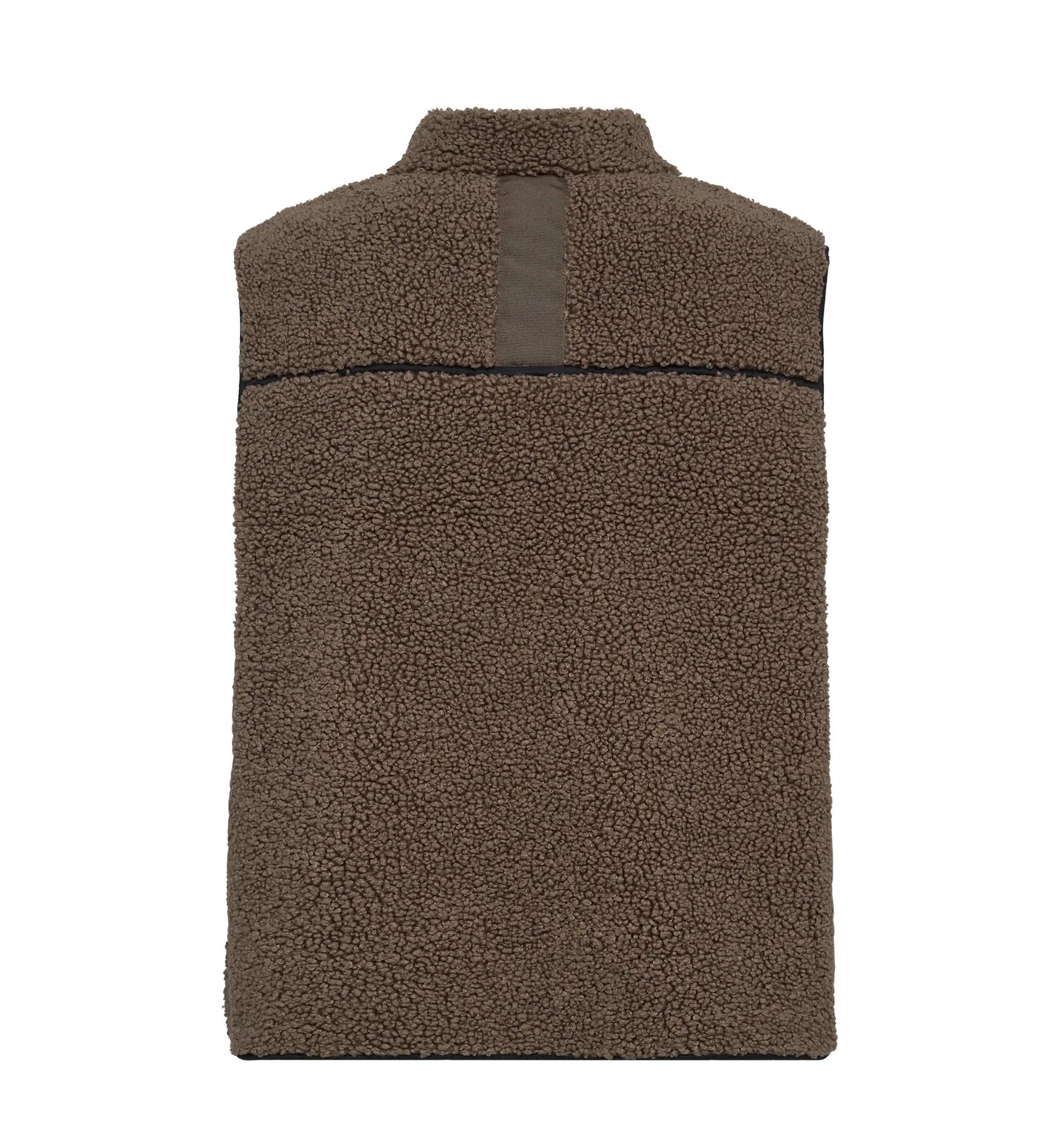 Denne teddy-vest er perfekt til lag-på-lag på en kølig efterårsdag. Den er designet i en afslappet pasform med flot kontrastfarvet kantbånd, lynlåslukning og praktiske lommer foran. Vesten er lidt længere bagpå og har stilfulde sideslidser i grafisk snit og bånddetaljer bagpå for et karakteristisk tvist. Style den med en chunky strik for lidt ekstra varme, eller brug den ud over en trenchcoat for et elegant og trendy outfit.
