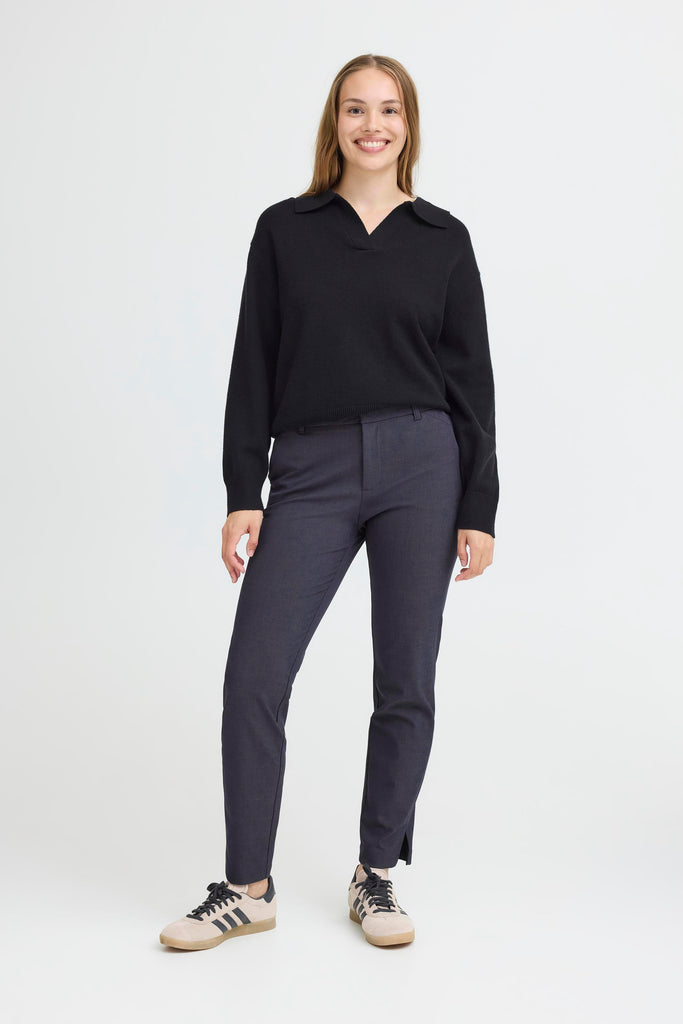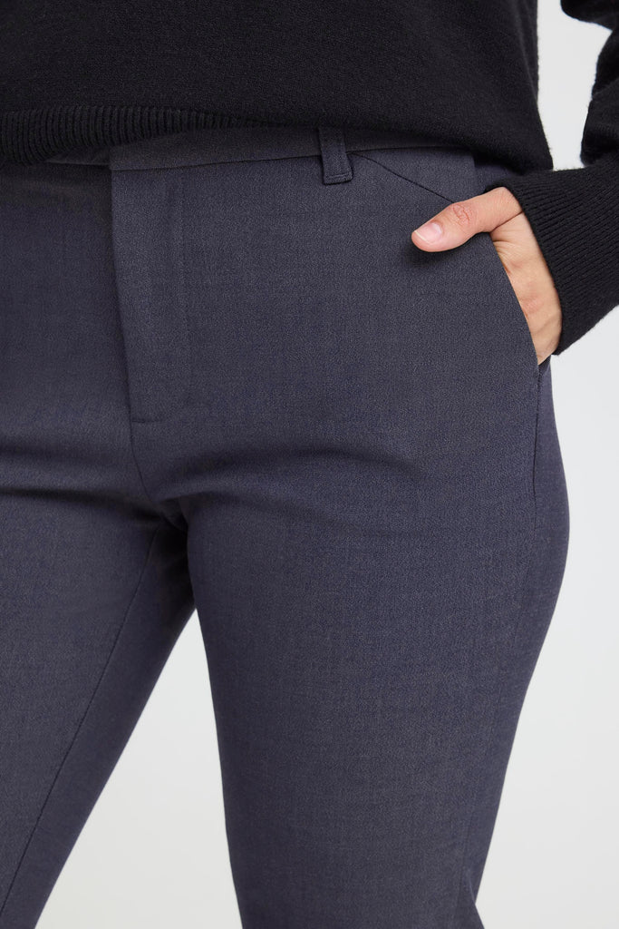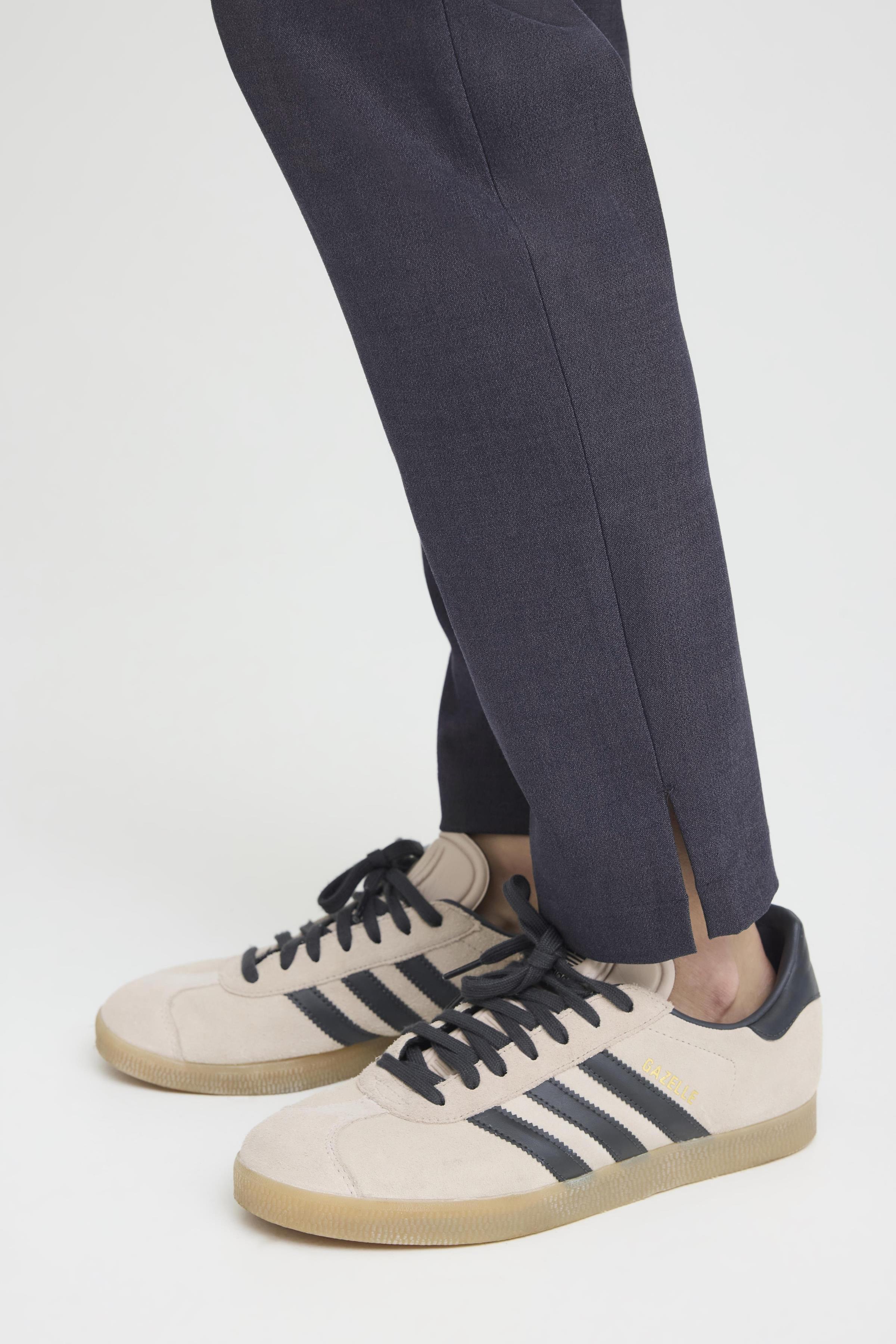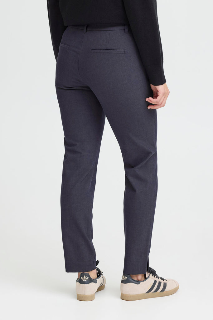 Høj-taljet buks med skrålommer, fast linning med bæltestropper samt paspoleret baglommer.