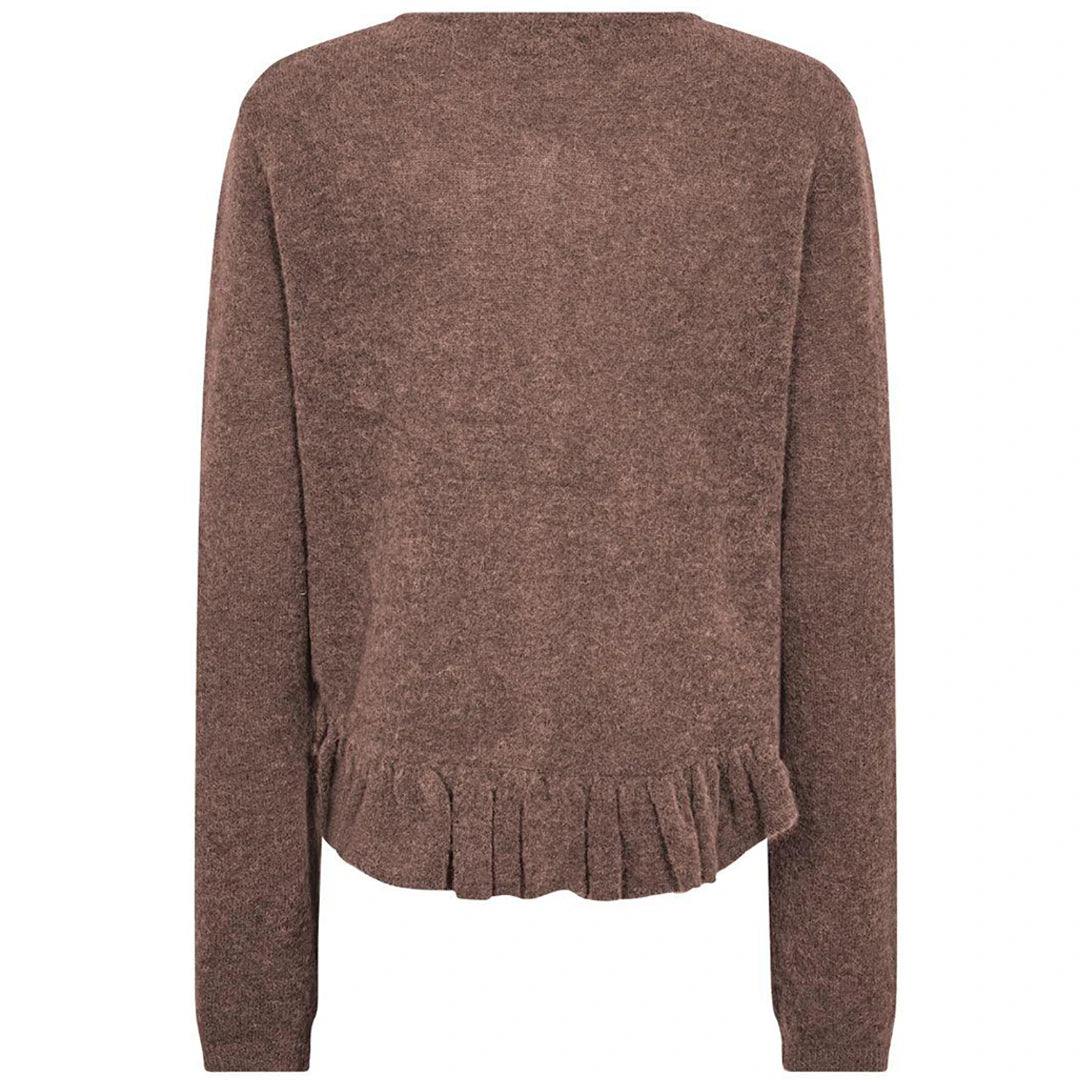 En blød cardigan i en uldblanding med lange ærmer, knaplukning og fine flæsedetaljer ved kanten. Den flatterende pasform og feminine udformning gør den perfekt til at tilføje struktur og et elegant touch til hverdagslooket.