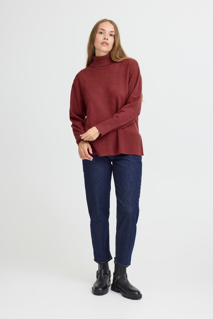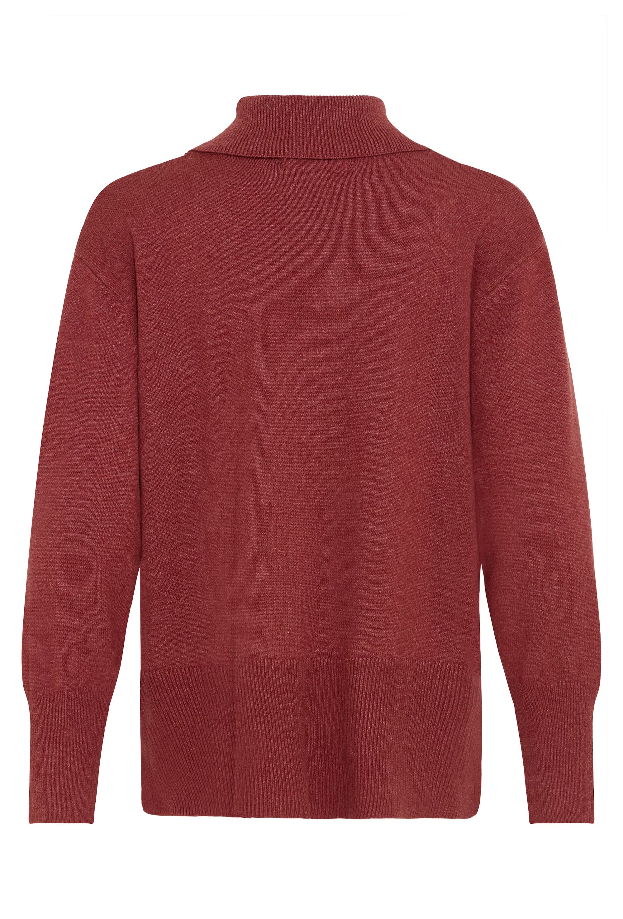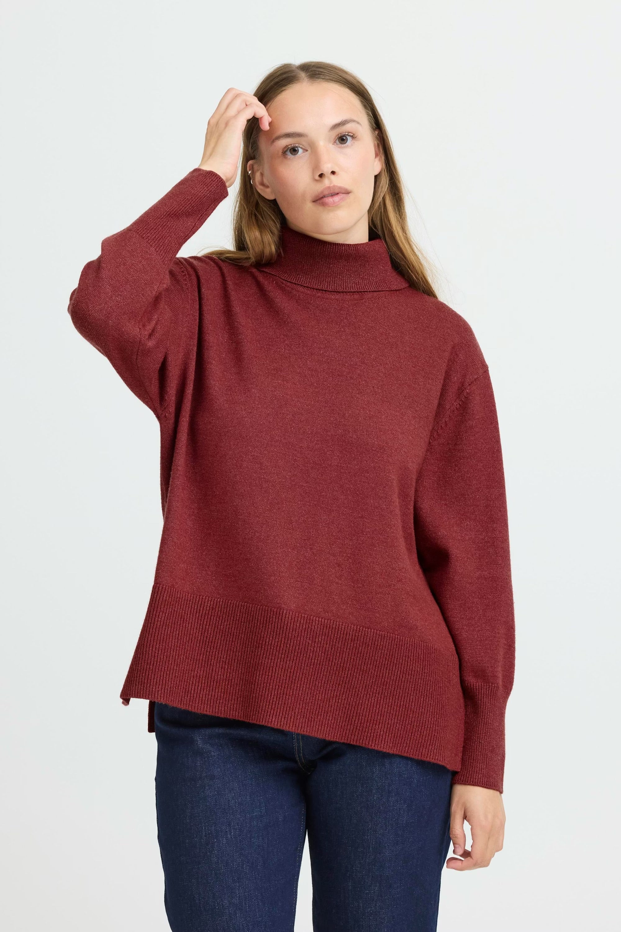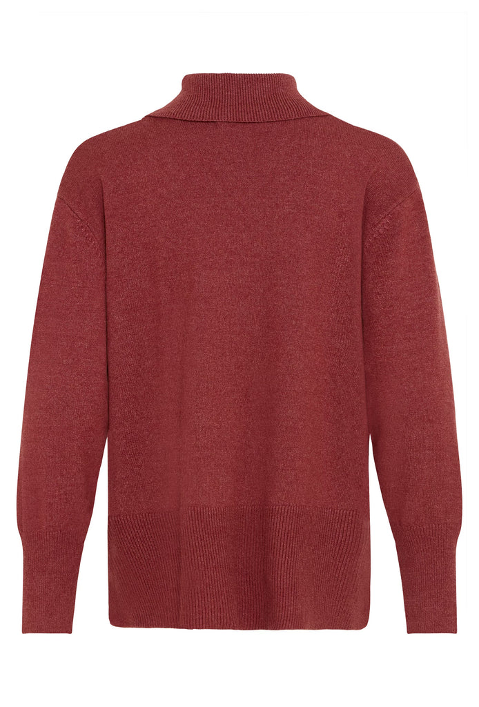 Lækker strik til de kolde dage men også til det kommende forår. Høj rullekrave samt bred ribkant og slids i siden.