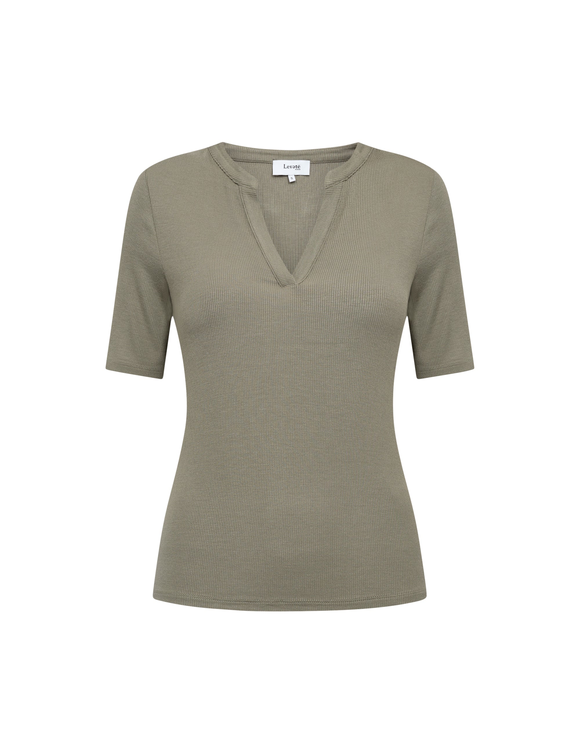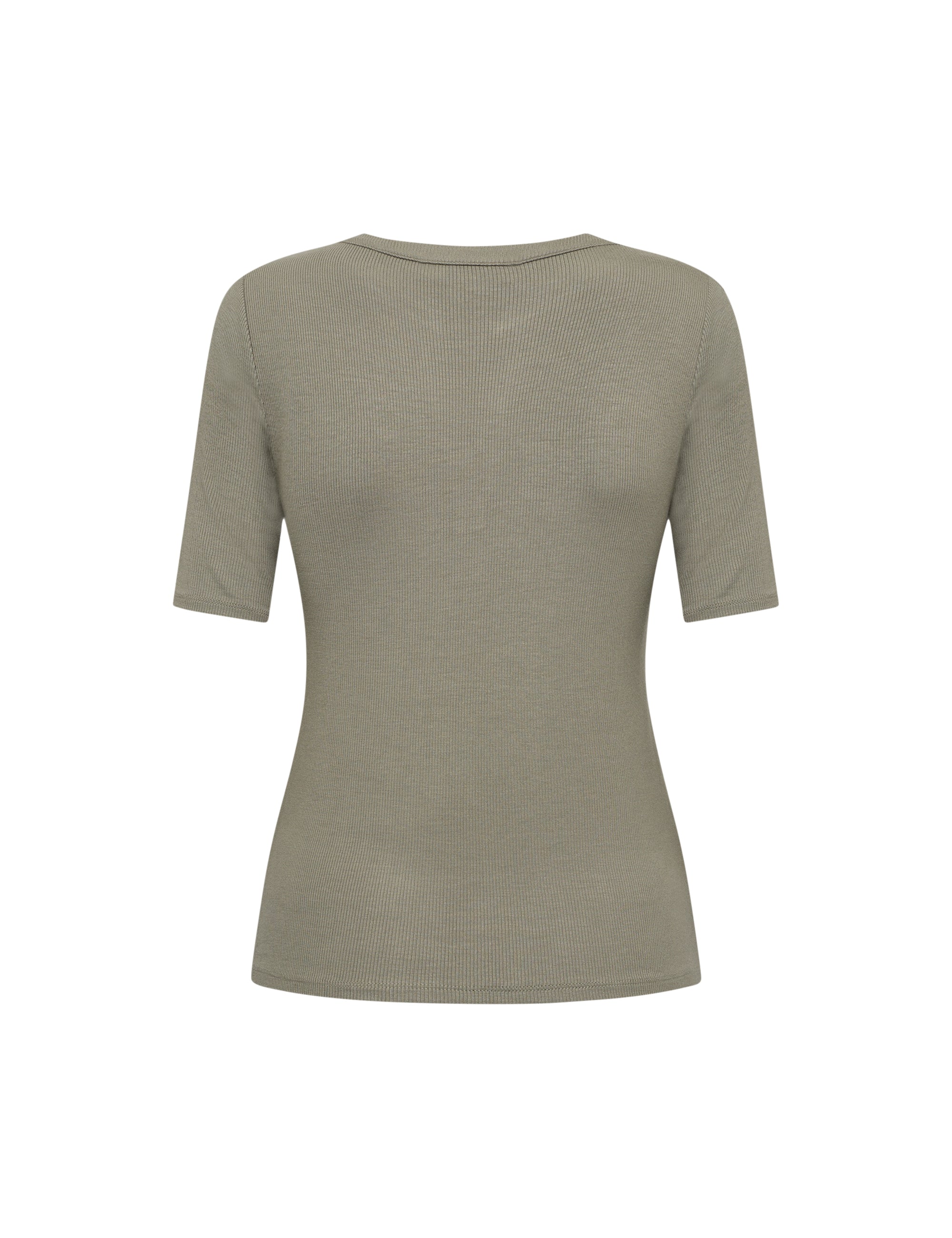 KA 14 er en tætsiddende T-shirt fremstillet af 95 % ECOVERO-viskose og 5 % elastan. T-shirten har V-udskæring med en beskeden kravedetalje, korte ærmer og fin ribstruktur, der forbedrer det samlede look. Sæt den sammen med skræddersyede bukser eller en afslappet nederdel for et afbalanceret kontor- eller weekendoutfit.
