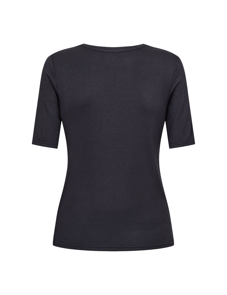 KA 14 er en tætsiddende T-shirt fremstillet af 95 % ECOVERO-viskose og 5 % elastan. T-shirten har V-udskæring med en beskeden kravedetalje, korte ærmer og fin ribstruktur, der forbedrer det samlede look. Sæt den sammen med skræddersyede bukser eller en afslappet nederdel for et afbalanceret kontor- eller weekendoutfit.
