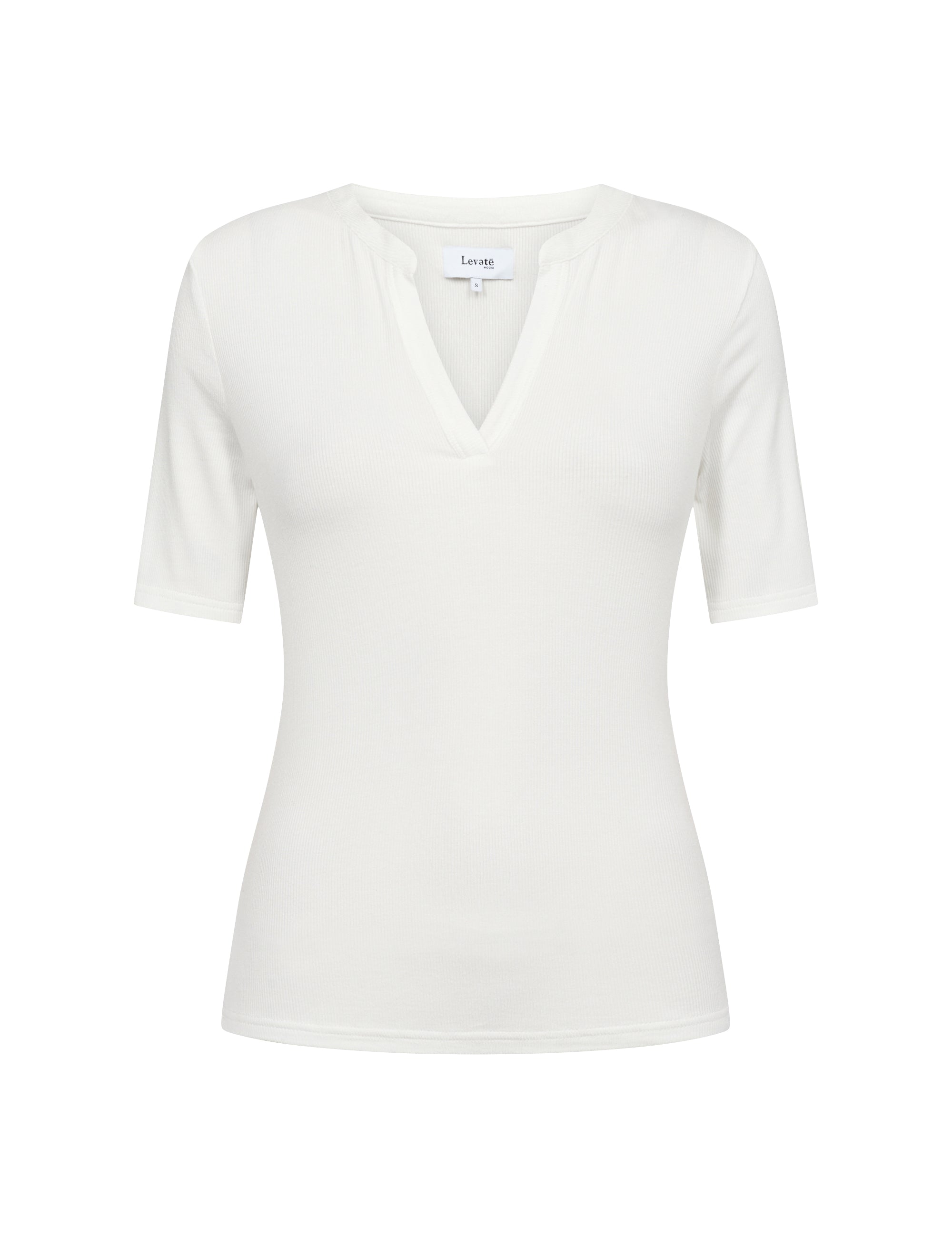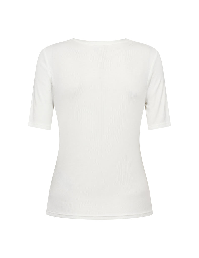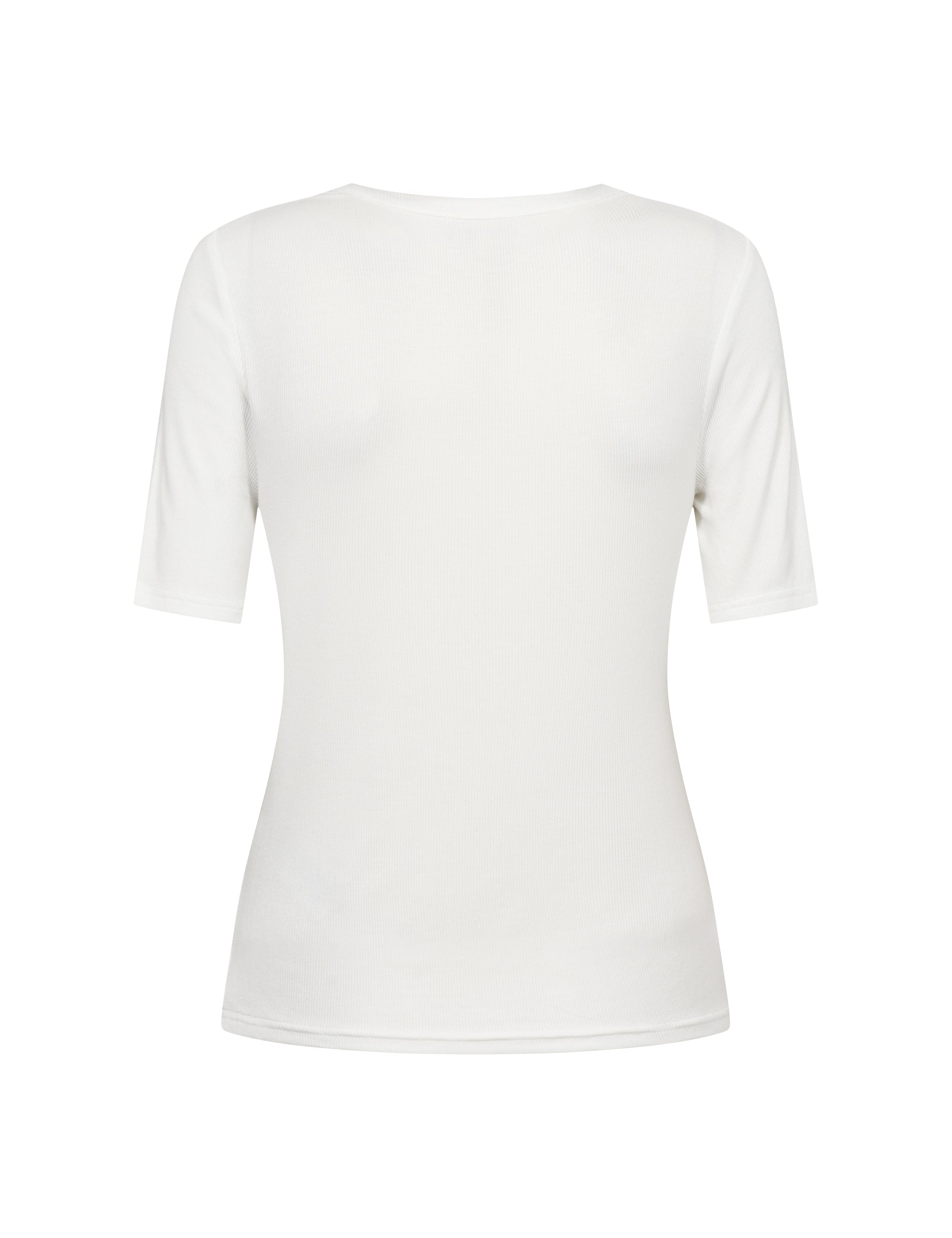 KA 14 er en tætsiddende T-shirt fremstillet af 95 % ECOVERO-viskose og 5 % elastan. T-shirten har V-udskæring med en beskeden kravedetalje, korte ærmer og fin ribstruktur, der forbedrer det samlede look. Sæt den sammen med skræddersyede bukser eller en afslappet nederdel for et afbalanceret kontor- eller weekendoutfit.