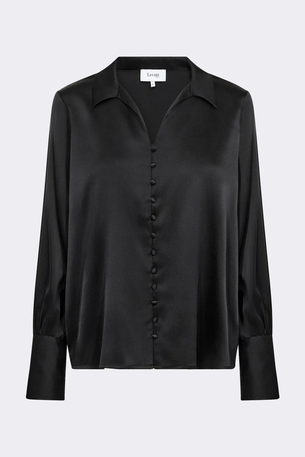 GALE 7 skjorte kombinerer 92% silke og 8% elastan for luksuriøs komfort. Skjorten har en klassisk V-hals med spids krave, stofbeklædte knapper og lange ærmer med manchetdetaljer. Sæt den sammen med skræddersyede bukser for et elegant arbejdslook eller med jeans til en afslappet udflugt.