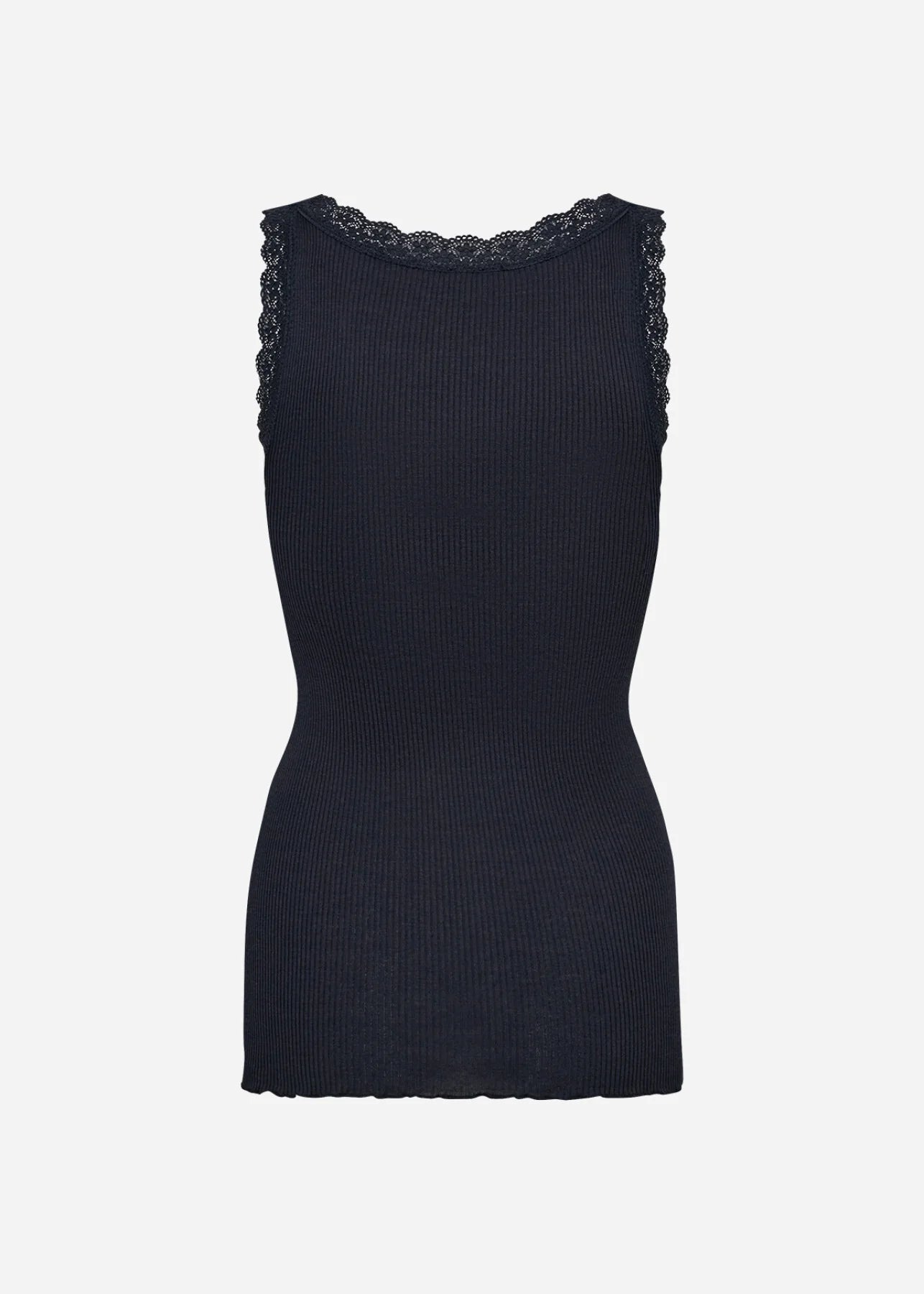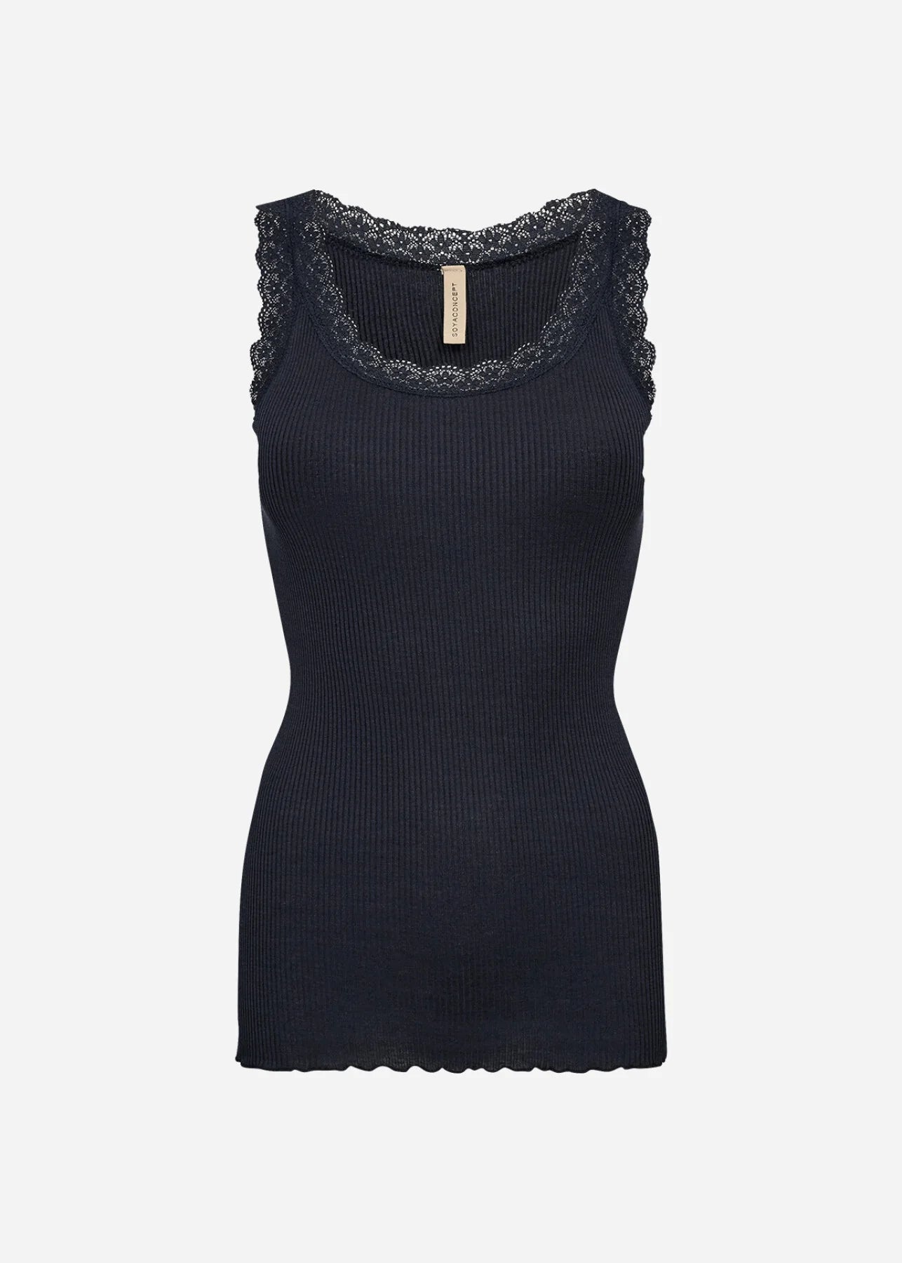 Sarona 1 er en must-have top i en eksklusiv silke og bomuldskvalitet. Det er en klassisk rundhalset top med blonde detaljer og en rippet effekt. Den feminine top er perfekt som en komfortabel basis under alle dine yndlings bluser eller kjoler.
