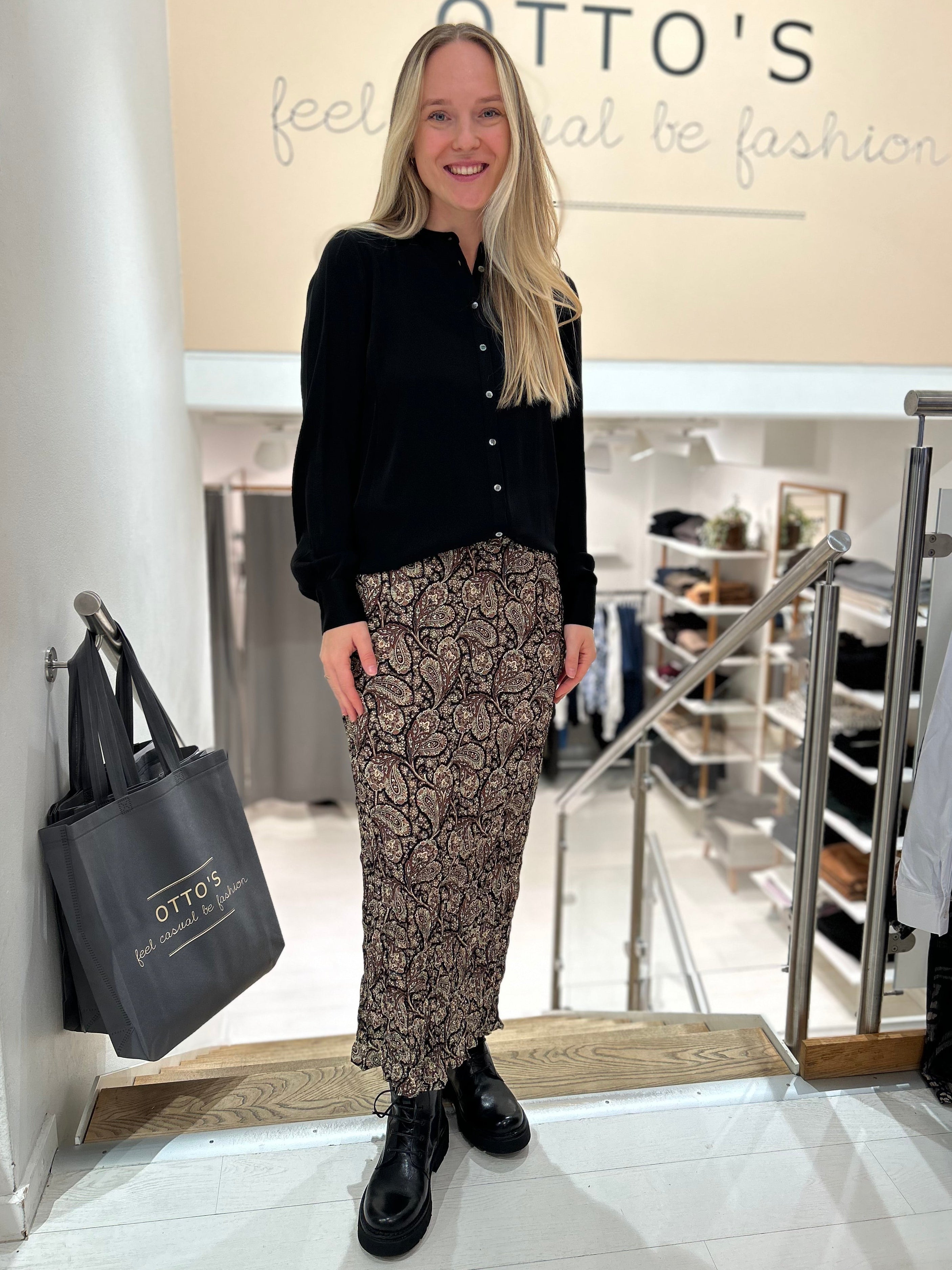 Sena nederdel har en lige pasform med elastisk linning og et elegant, krøllet look. Ideel til både afslappede og formelle outfits.