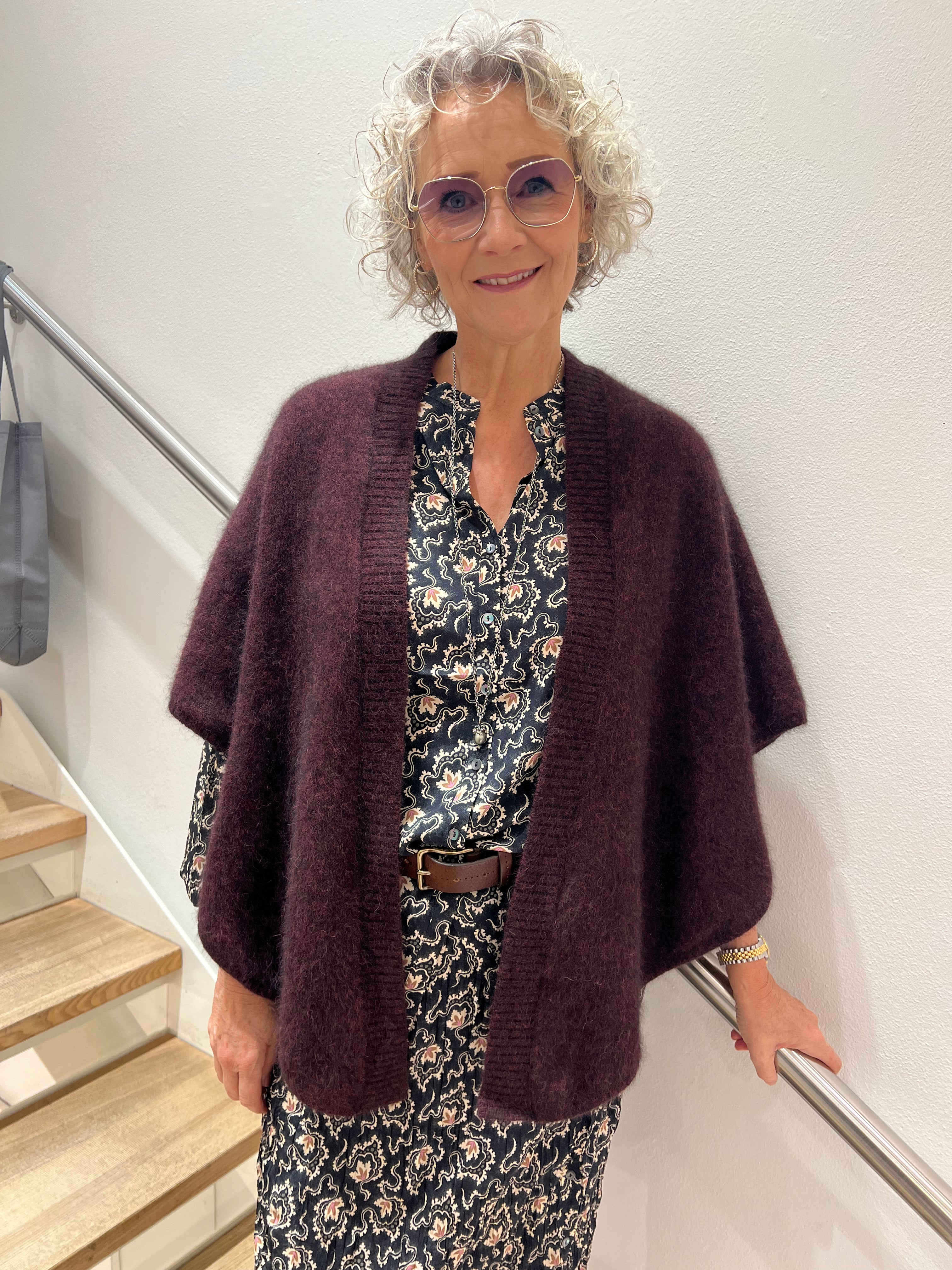 Sanne Cape vaskebjørns-strik, Wine Melange